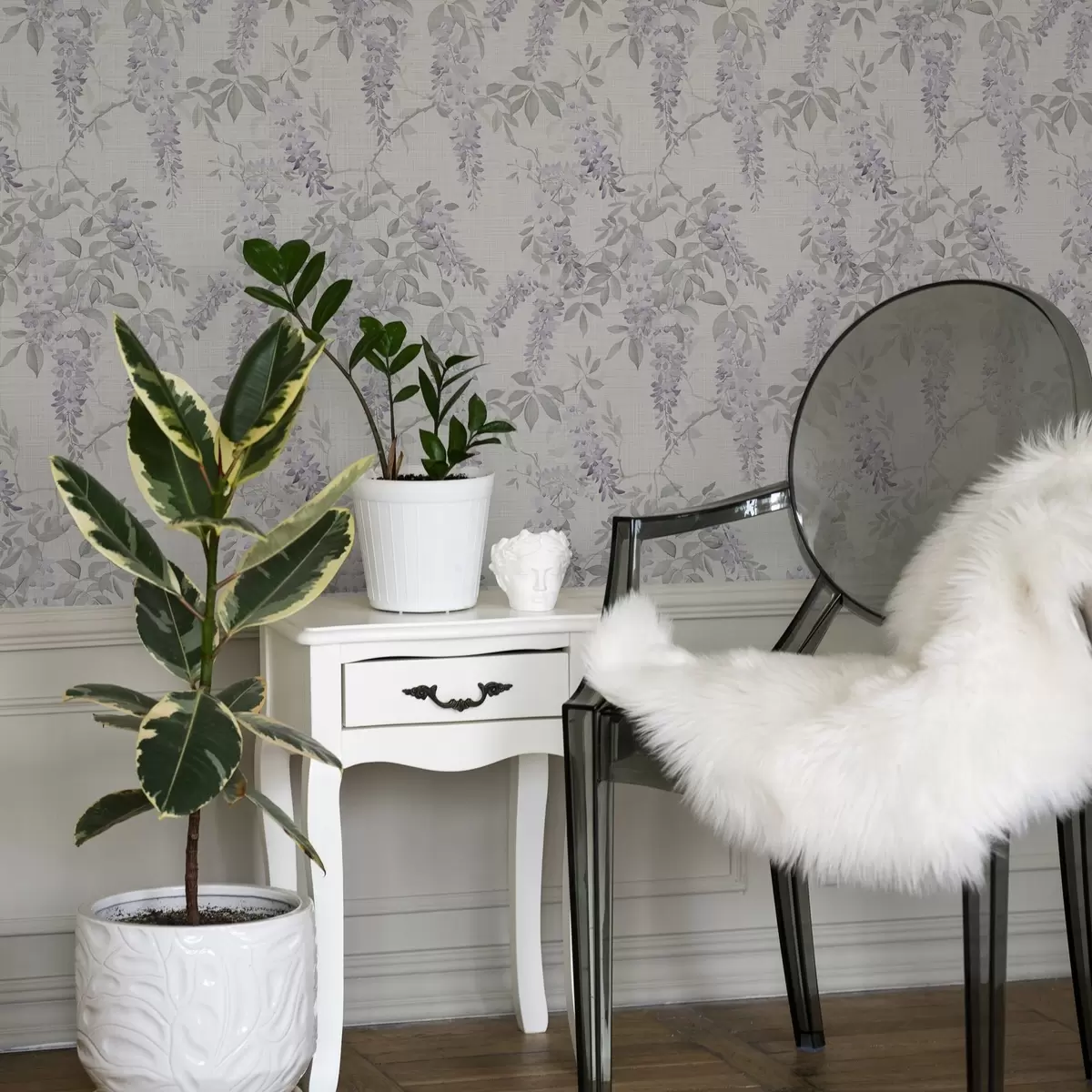 Papiers peints Glycine lilas sur fond blanc, style aquarelle Nr. a00239