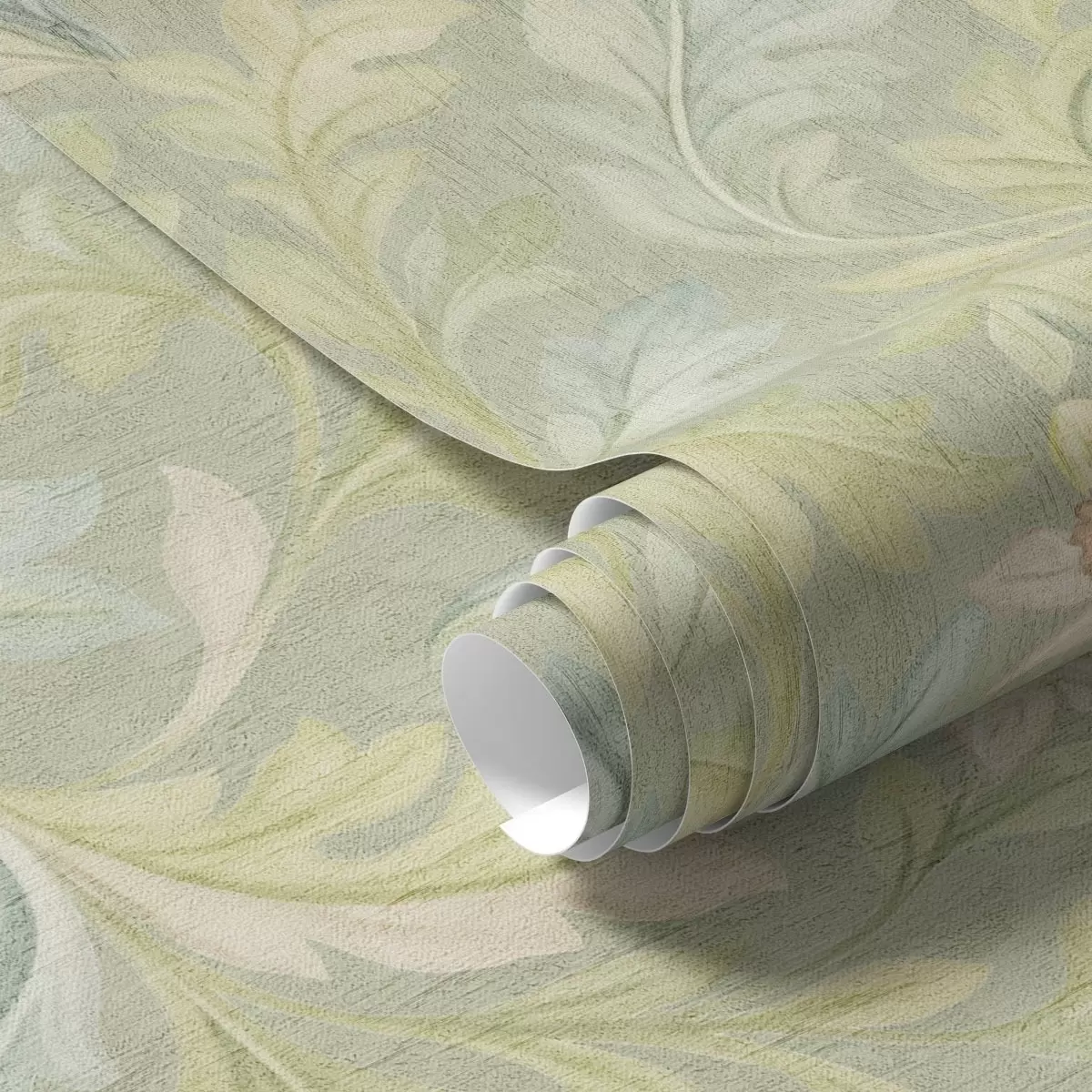 Papiers peints Feuilles vintage sur fond vert, couleurs pastel Nr. a00277