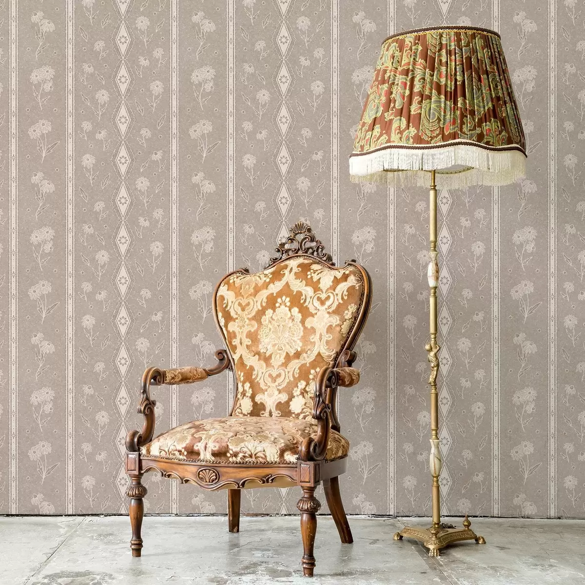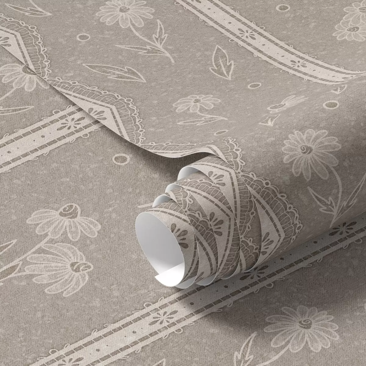 Papiers peints Rayures avec marguerites et dentelle sur fond gris-beige Nr. a00295