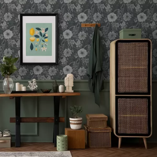 Papiers peints Motif floral gris et blanc avec effet rétro Nr. a00307