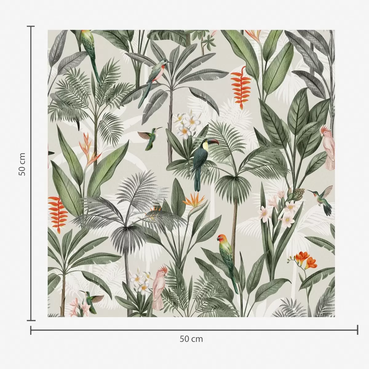 Papiers peints Oiseaux tropicaux parmi les feuilles de palmier Nr. a00308