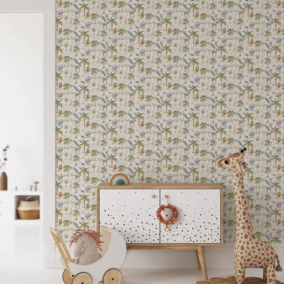 Papiers peints Animaux africains parmi les palmiers et les plantes exotiques Nr. a00321
