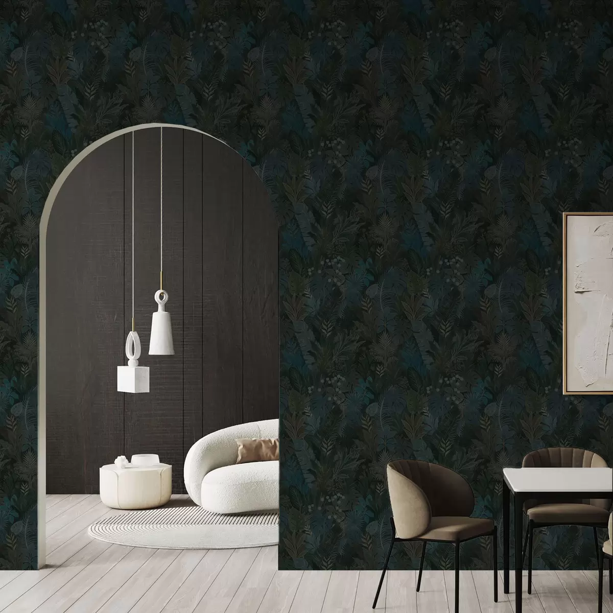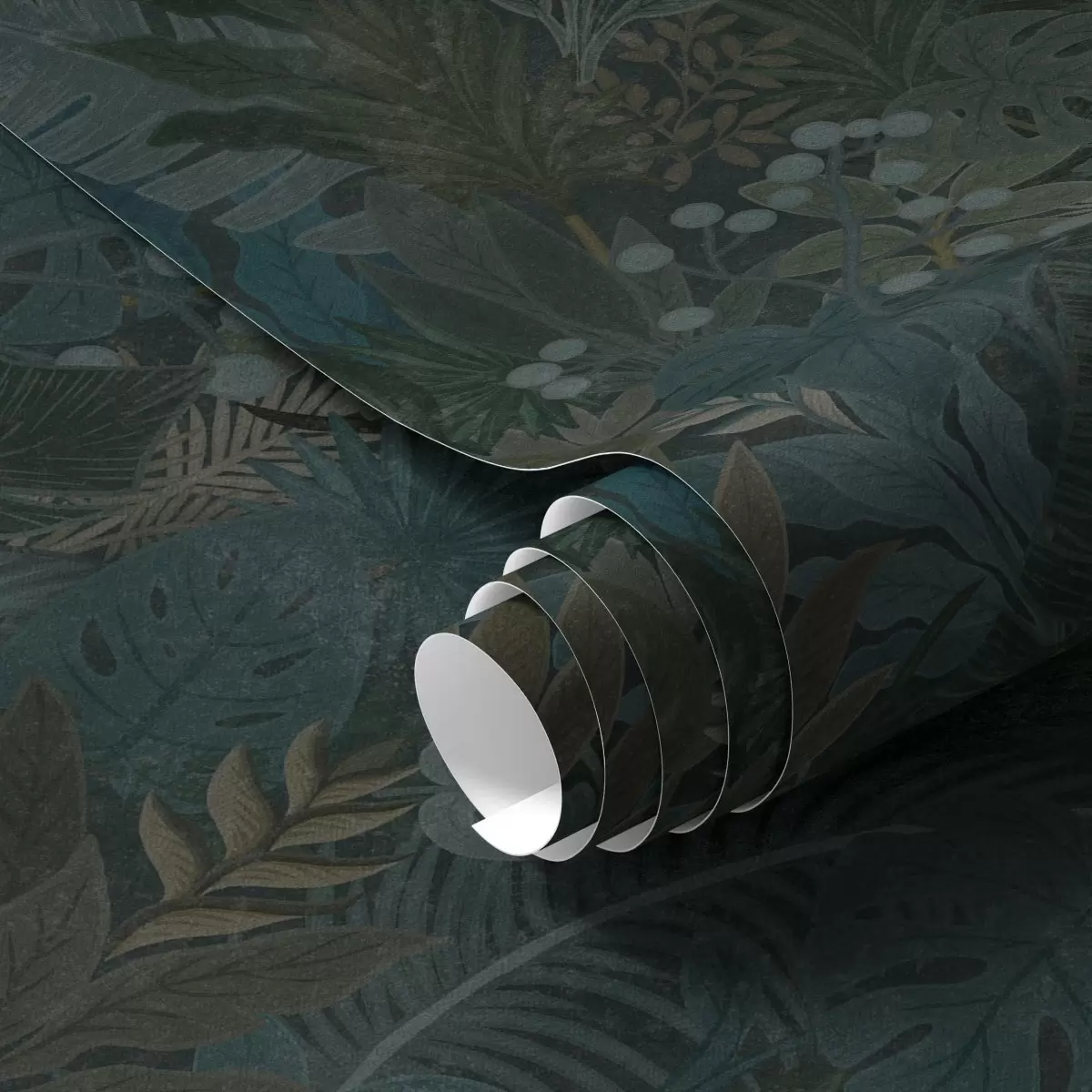 Papiers peints Feuillage tropical vert foncé avec des accents bleus Nr. a00327