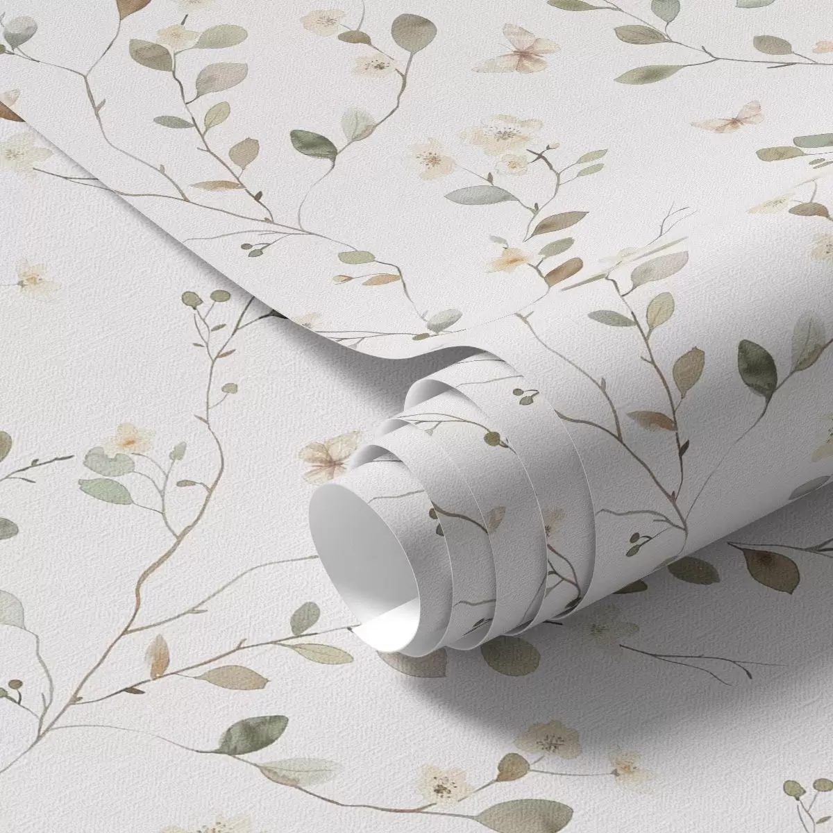 Papiers peints Branches fines avec fleurs et papillons sur fond blanc Nr. a00342