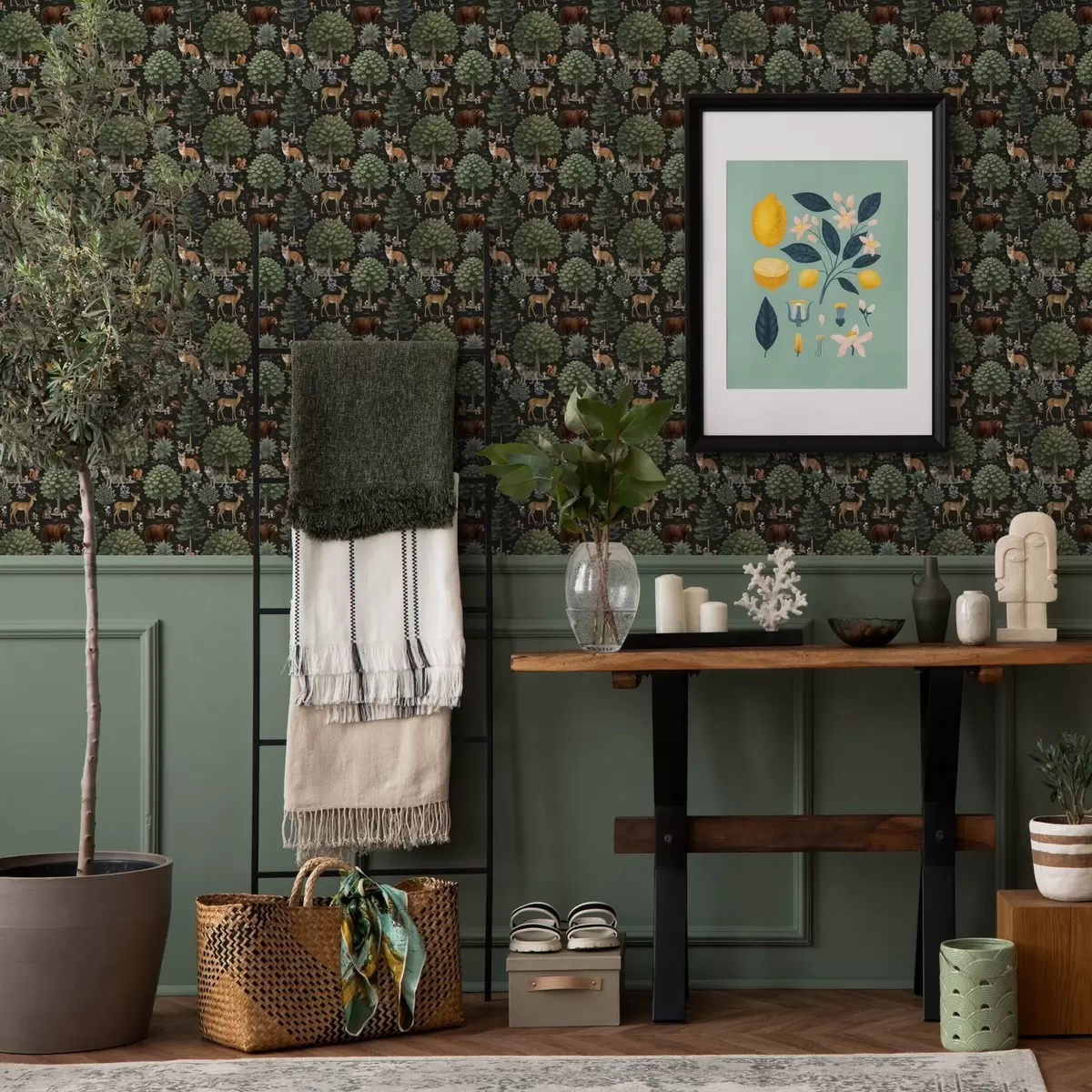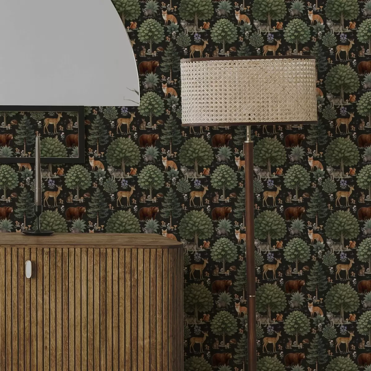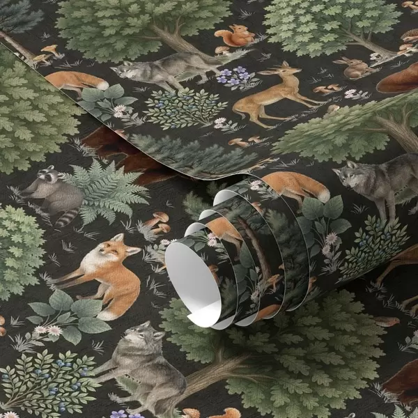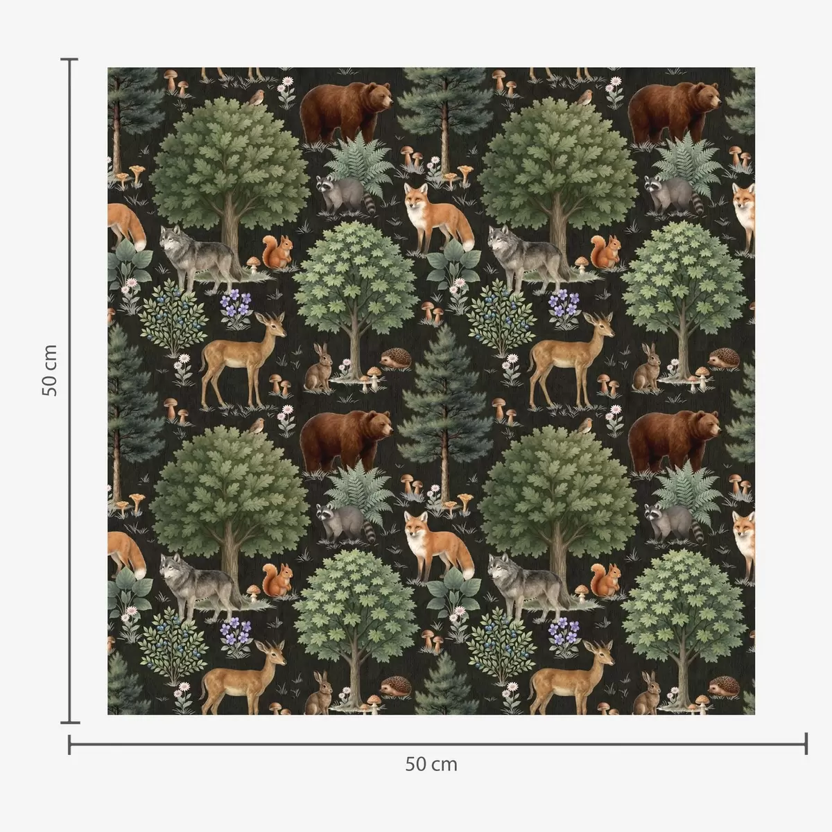 Papiers peints Aquarelle d'animaux de la forêt avec arbres et champignons Nr. a00391
