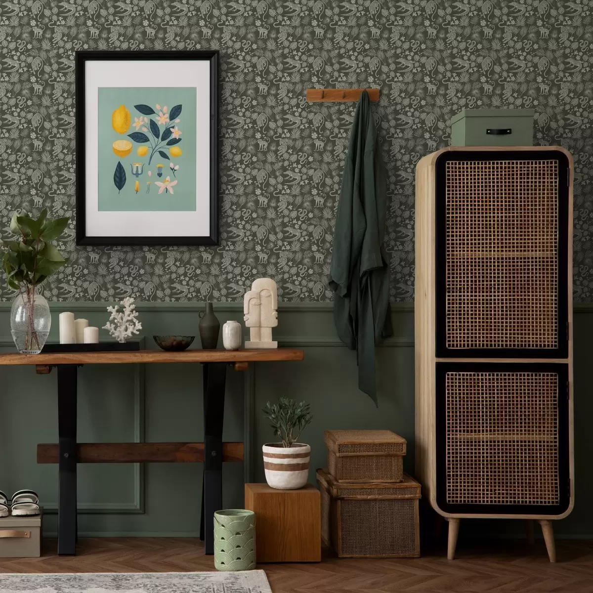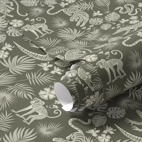 Papiers peints Silhouettes d'animaux sauvages parmi des feuilles tropicales Nr. a00404