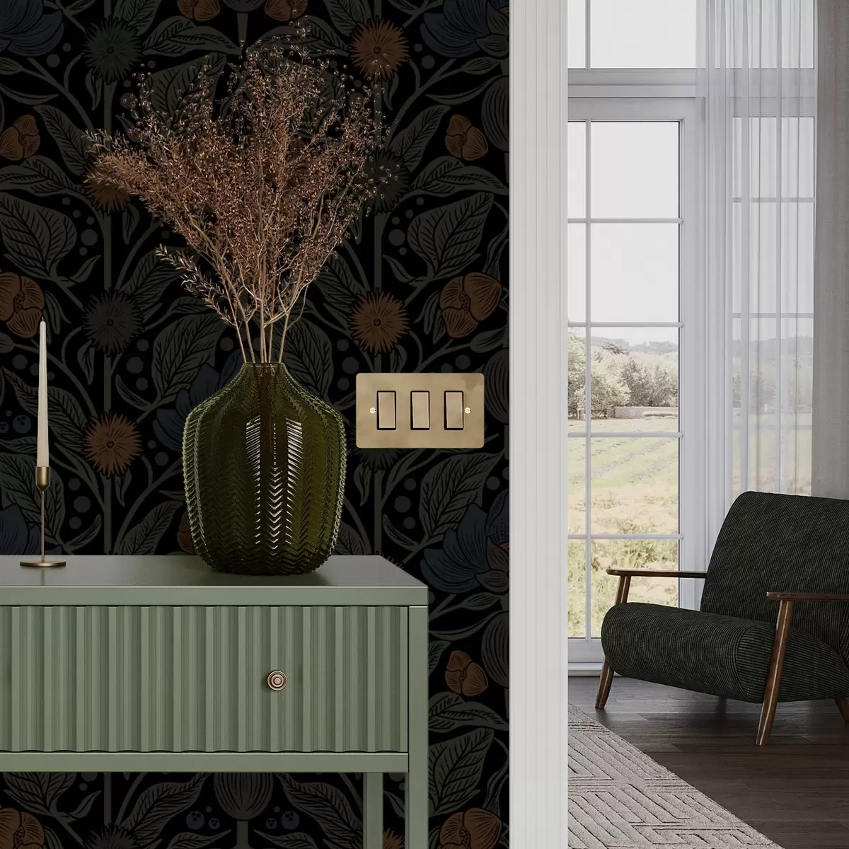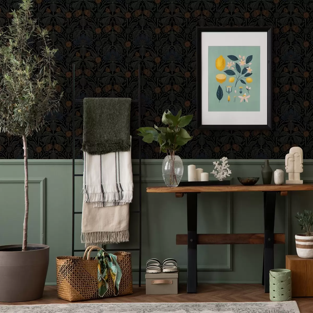 Papiers peints Ornement floral foncé avec des accents orange Nr. a00411