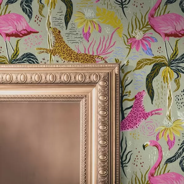 Papiers peints Flamants roses et léopards parmi les plantes tropicales Nr. a00470