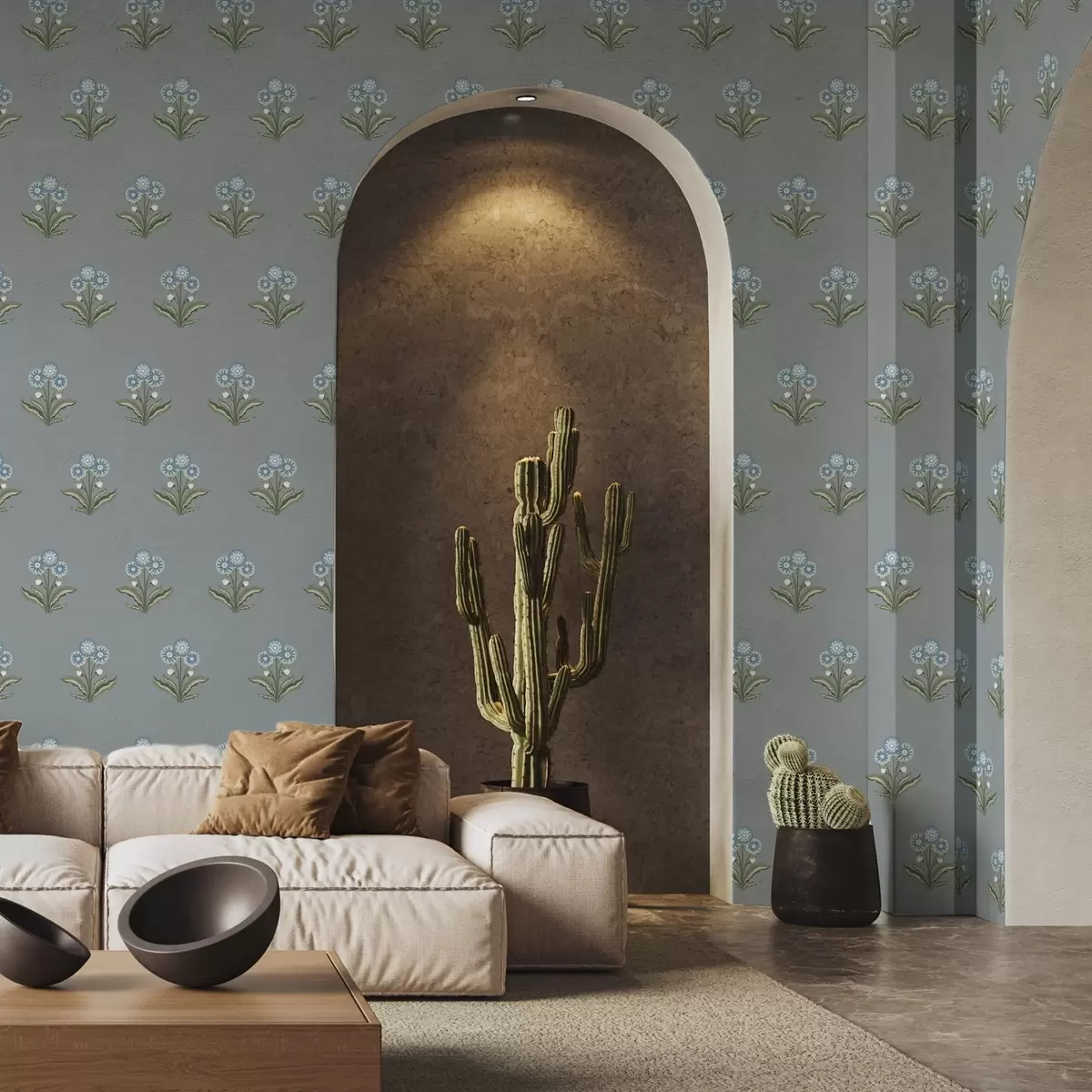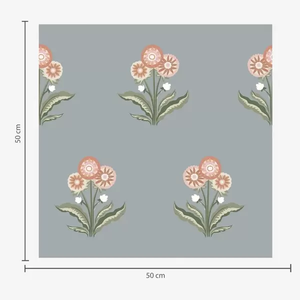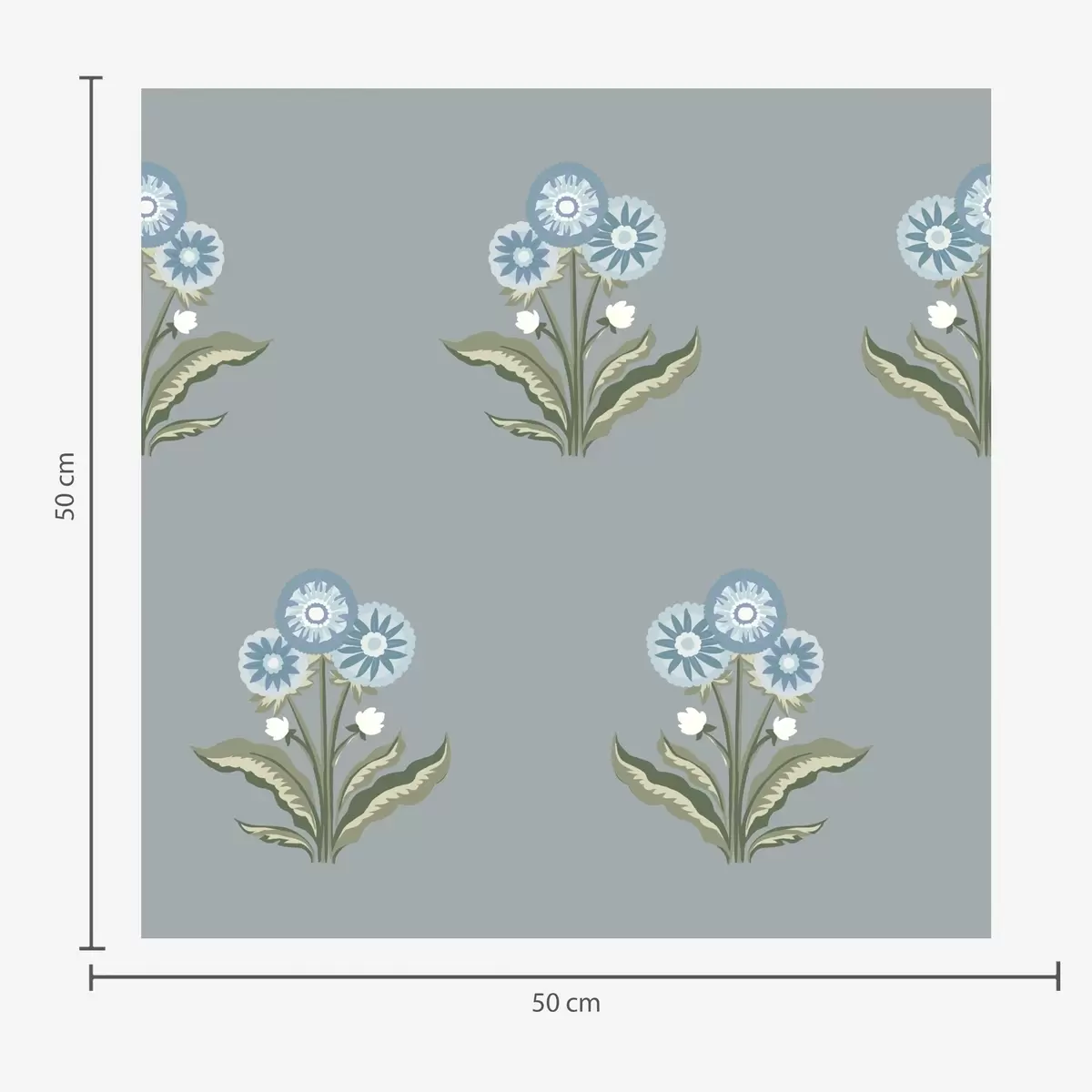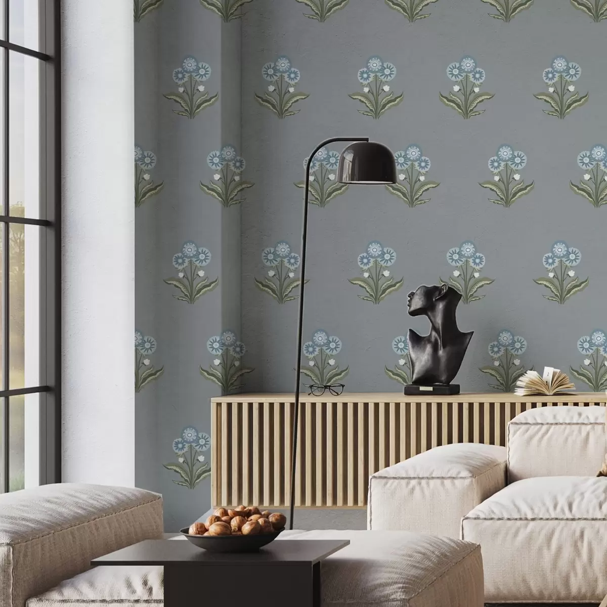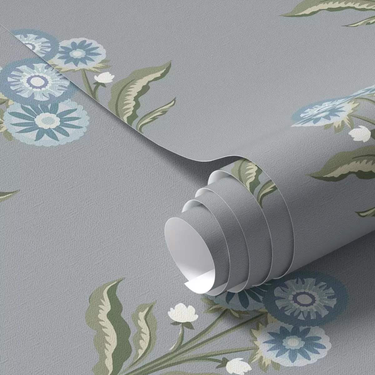 Papiers peints Fleurs stylisées sur fond gris-bleu, palette de couleurs froides Nr. a00494v1