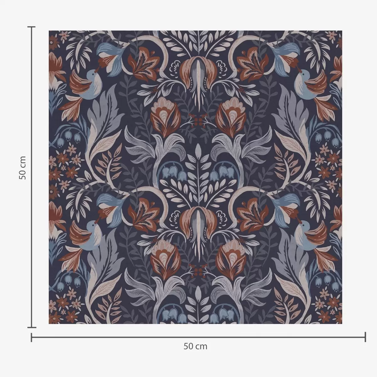 Papiers peints Fleurs et oiseaux folkloriques sur fond bleu foncé Nr. a00502