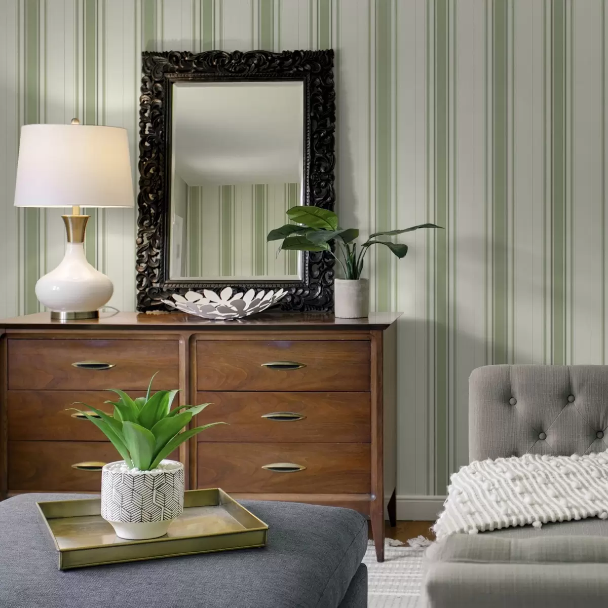 Papiers peints Fond clair avec bandes vertes foncées Nr. a00562