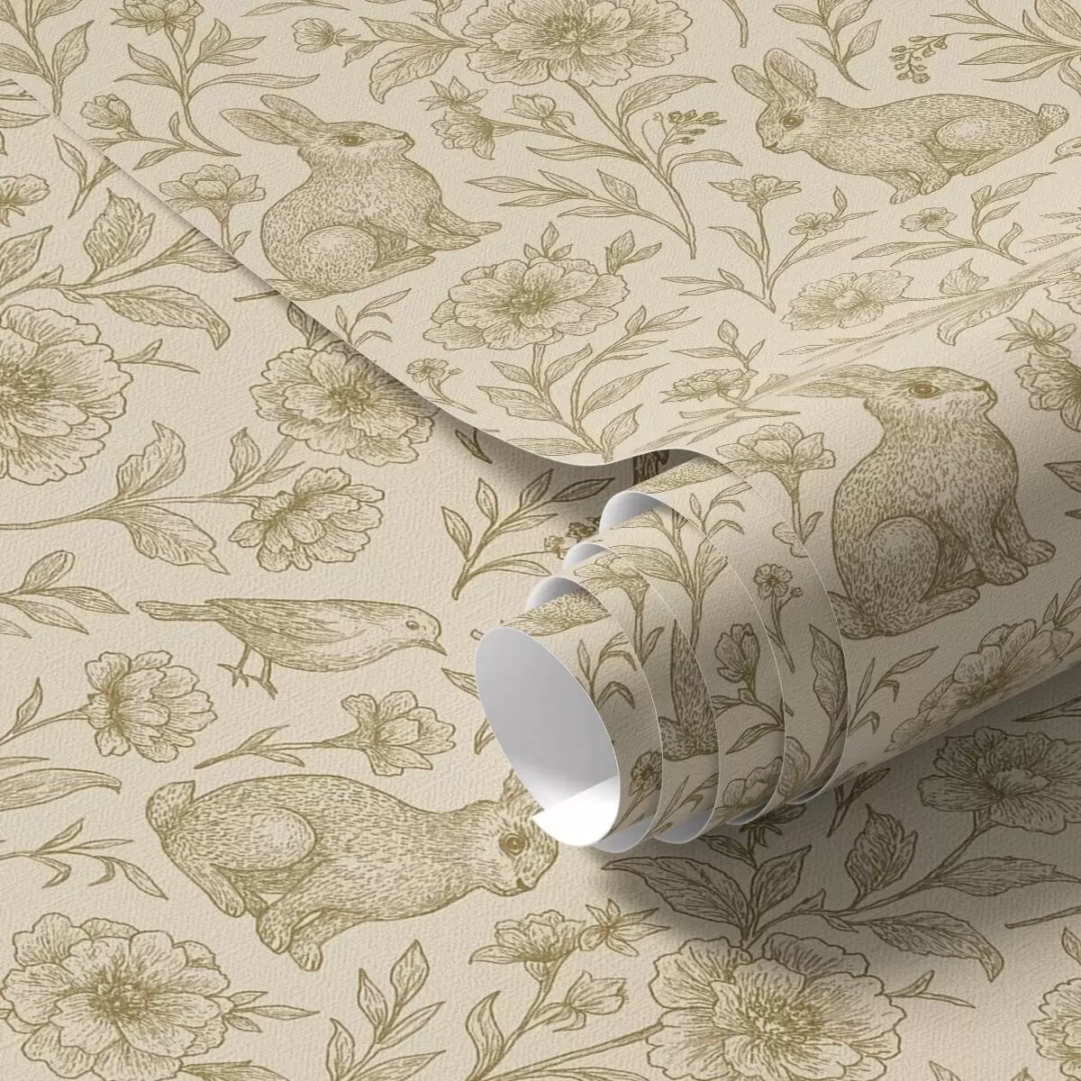 Papiers peints Lapins et oiseaux dans un motif floral Nr. a00571