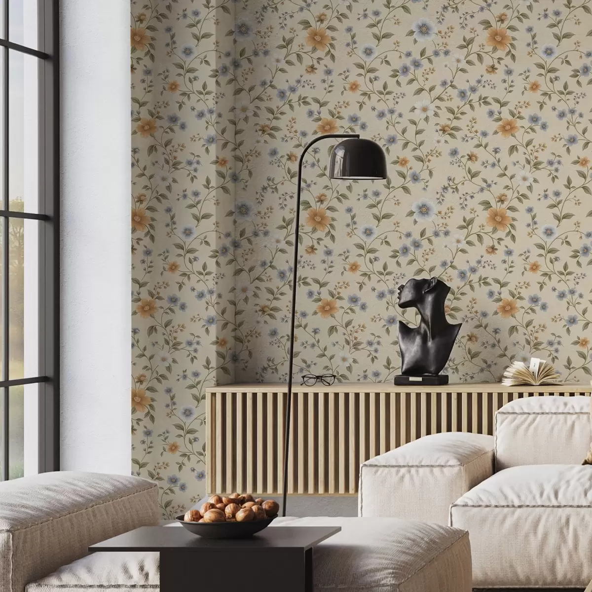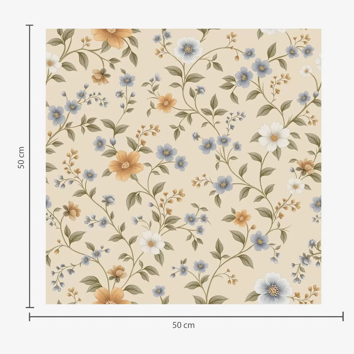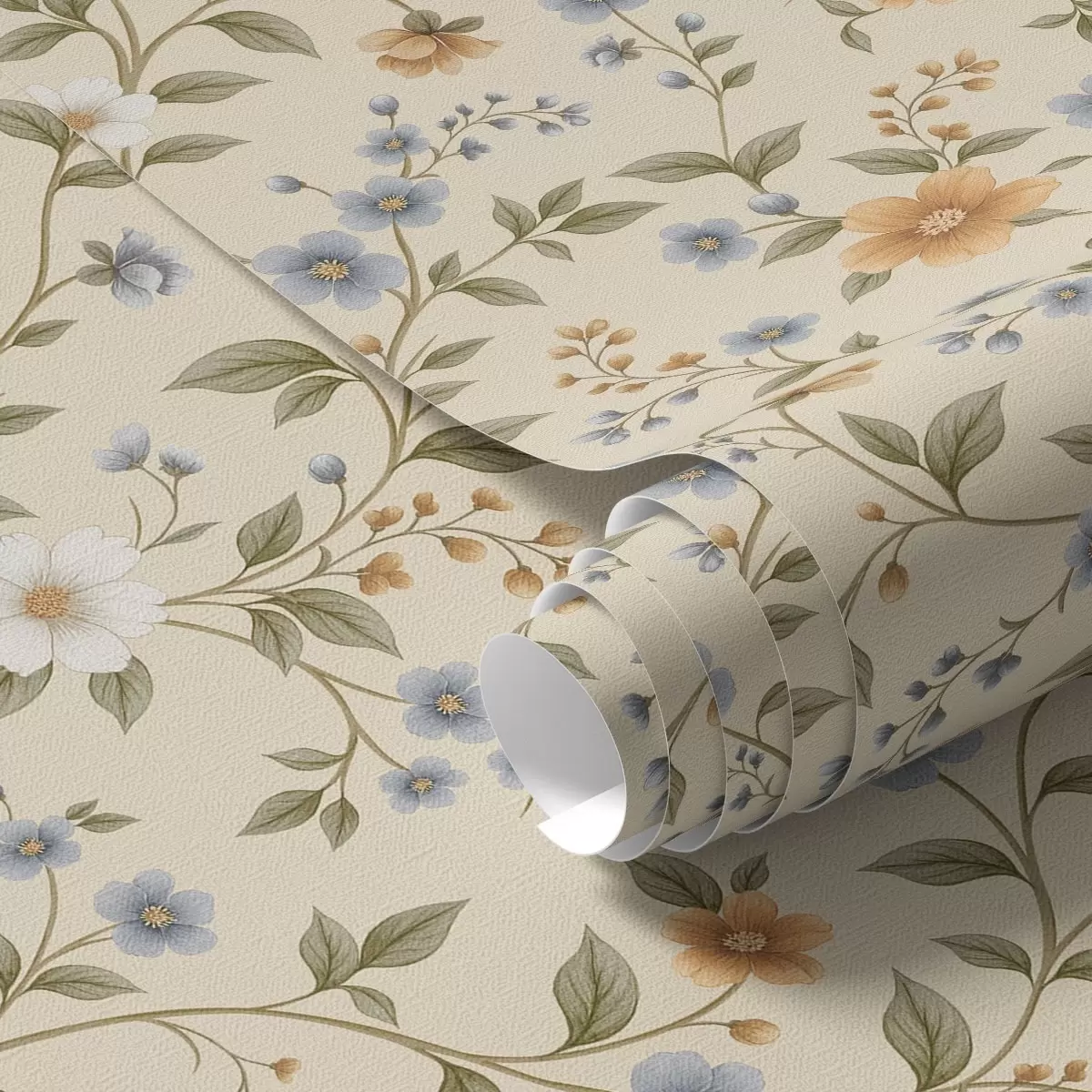 Papiers peints Branches fleuries avec des fleurs bleues et pêche Nr. a00575