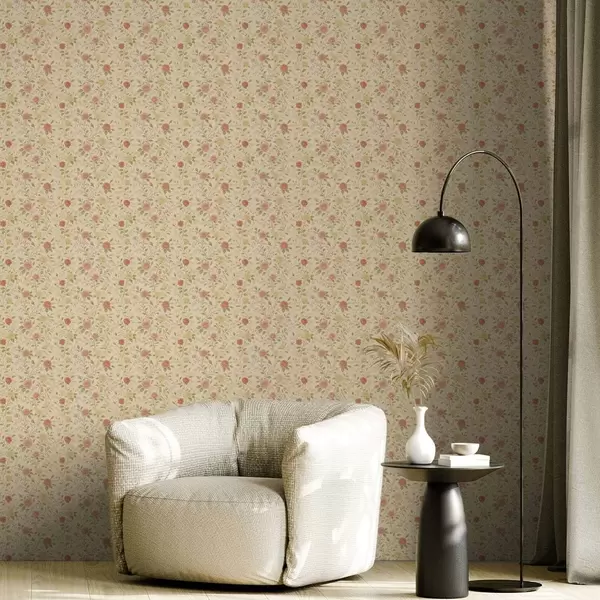 Papiers peints Roses vintage couleur pêche et jaune sur fond crème Nr. a00577
