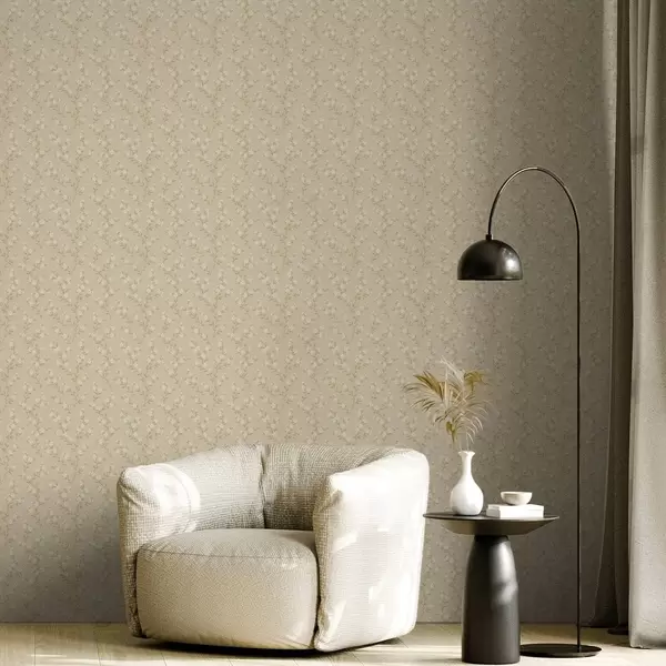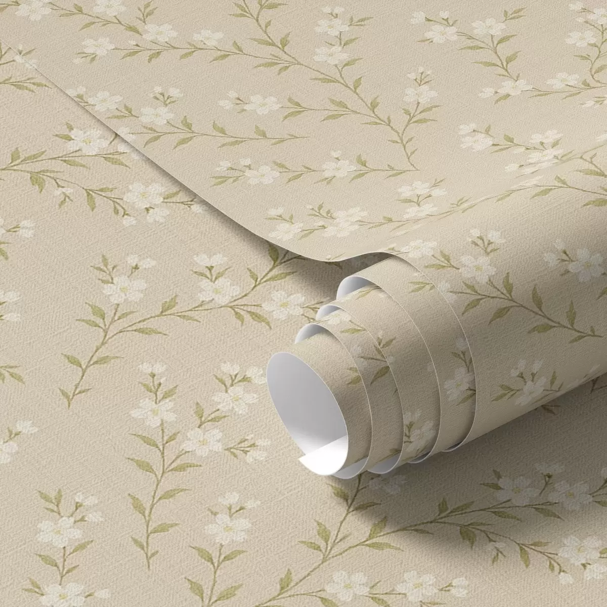 Papiers peints Petites branches blanches sur fond de lin beige Nr. a00584