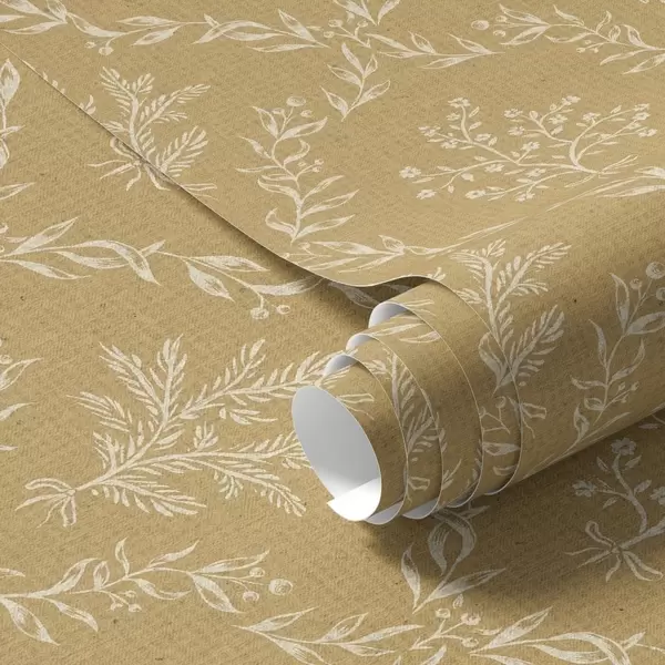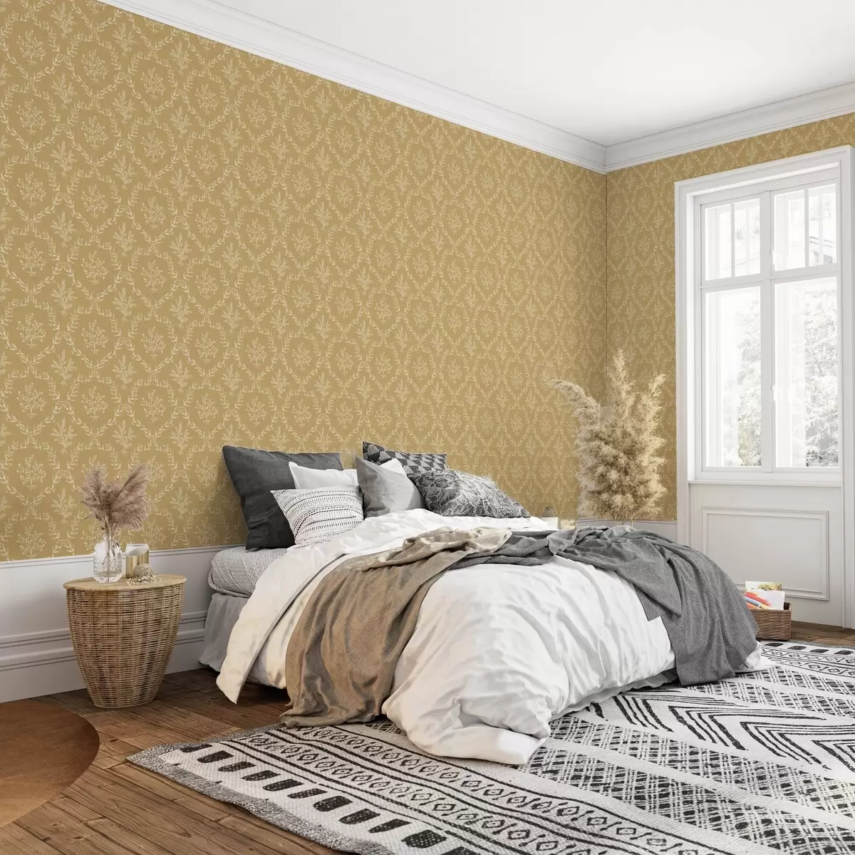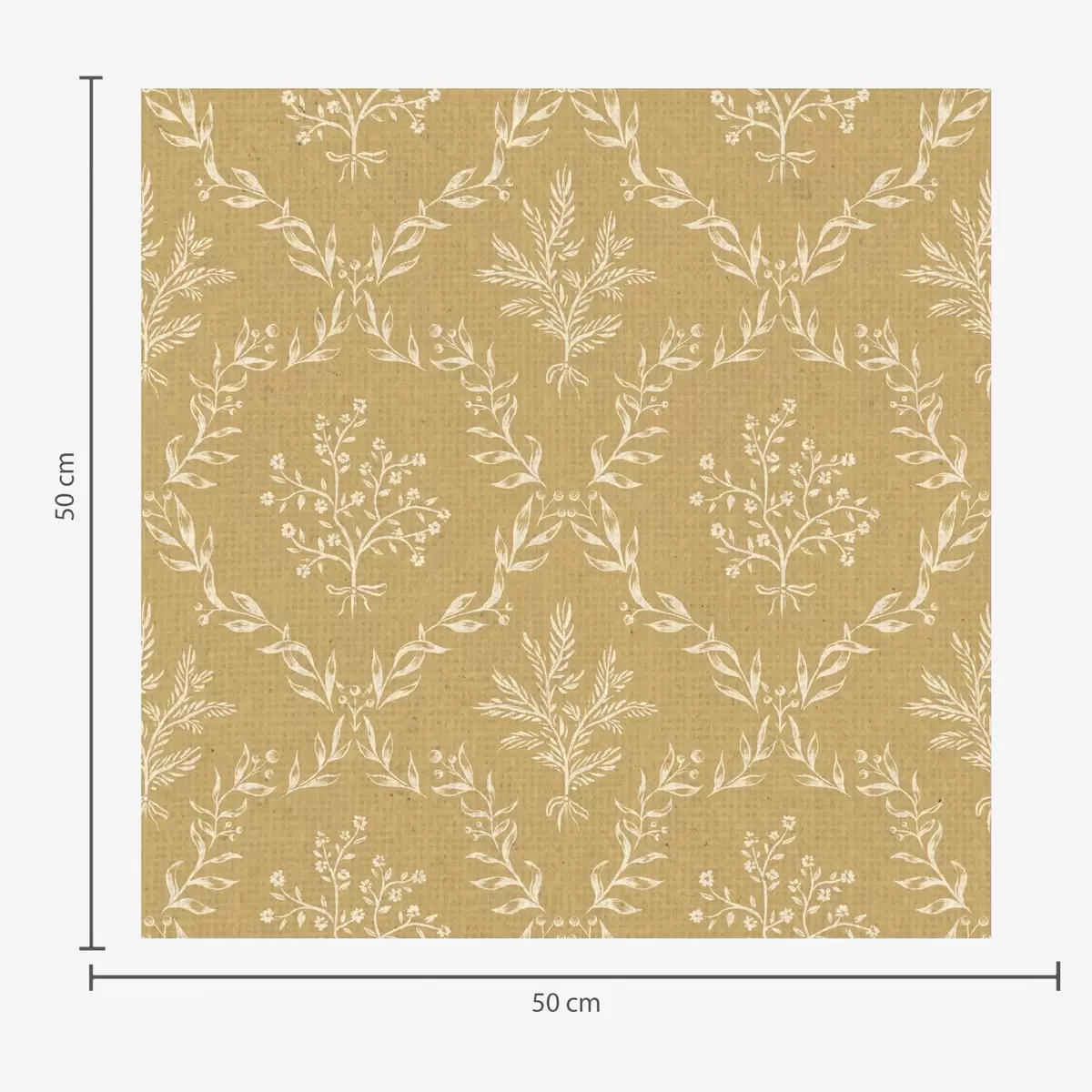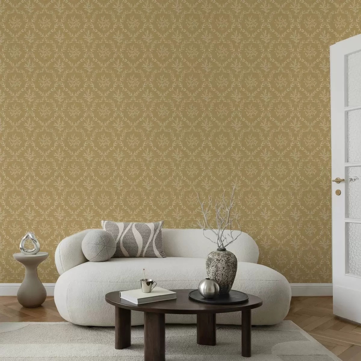 Papiers peints Couronnes blanches d'herbes et de fleurs sur fond moutarde Nr. a00599
