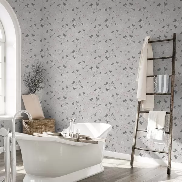 Papier peint Fleurs aériennes sur fond clair, tons doux rose-gris a00600