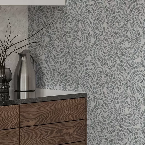 Papiers peints Spirales feuillues dans des tons gris-bleu frais Nr. a00602v1