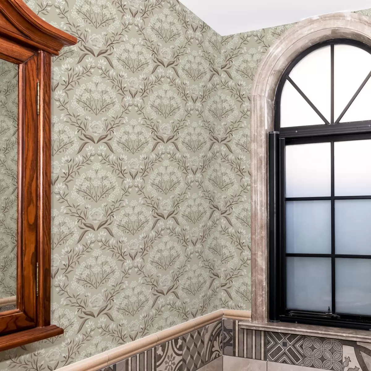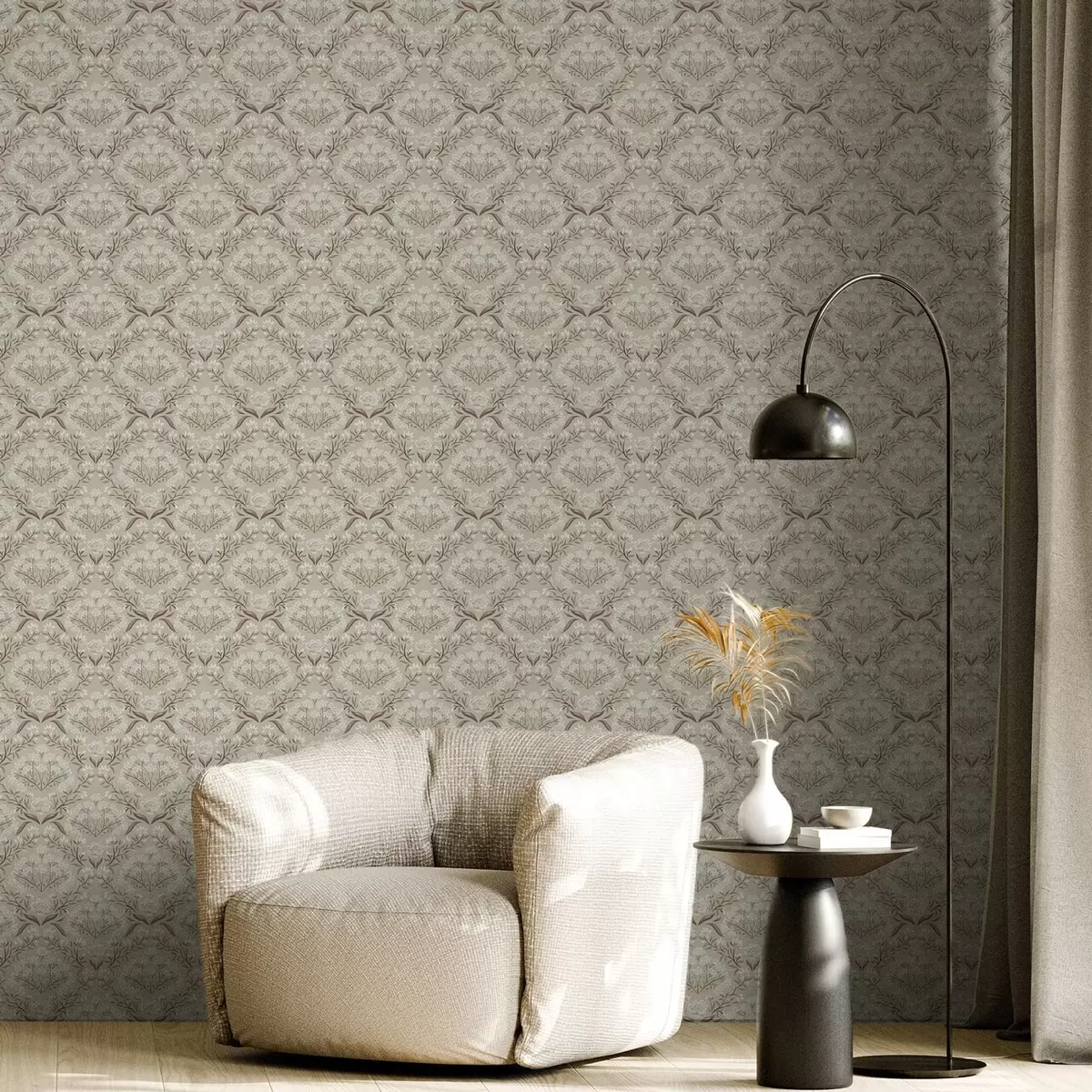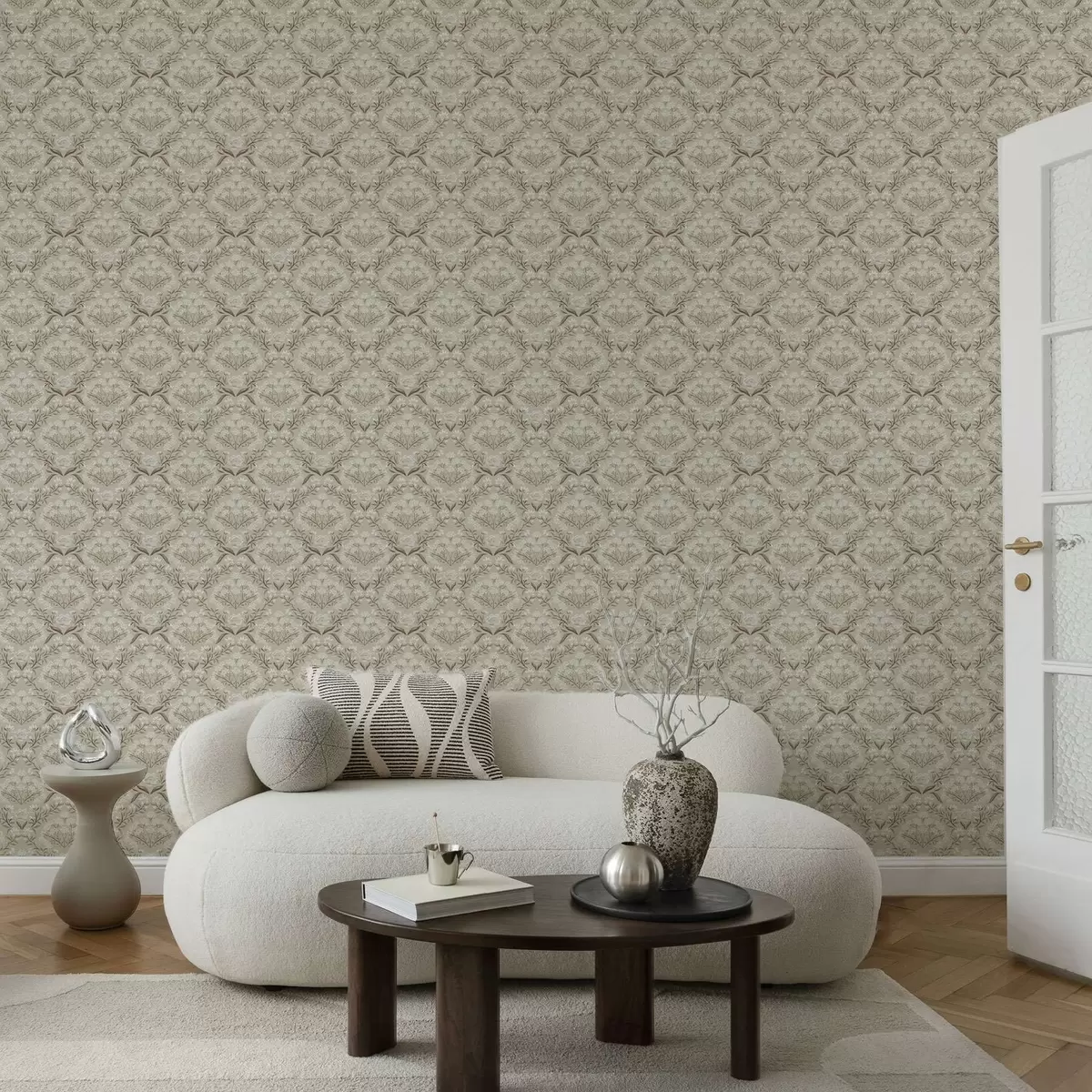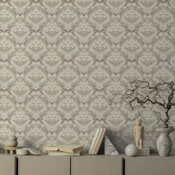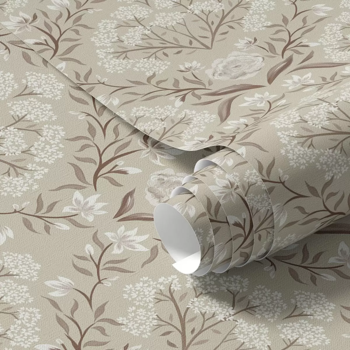 Papiers peints Damassé beige : pivoines, perce-neige et grappes dentelées Nr. a00603v1