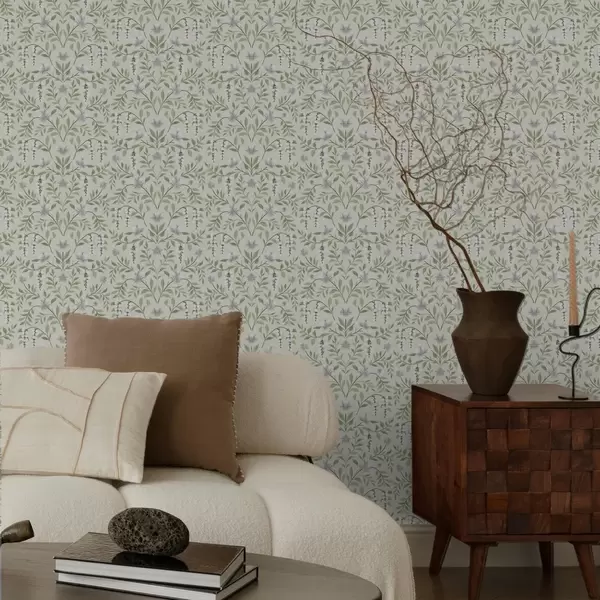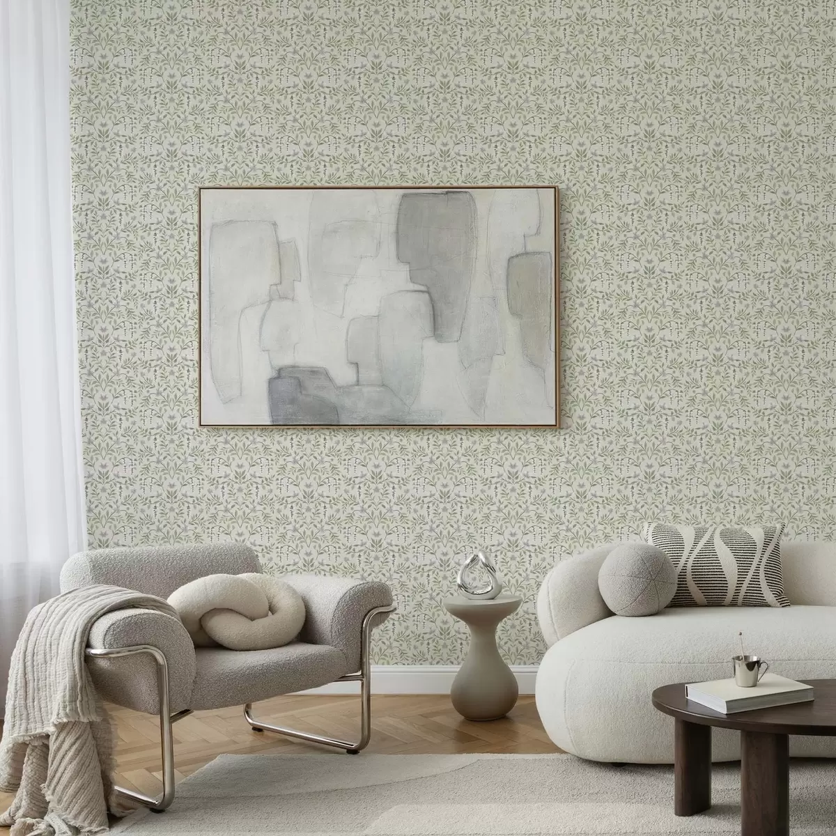Papiers peints Ornement végétal léger avec fleurs blanches, symétrie Nr. a00609