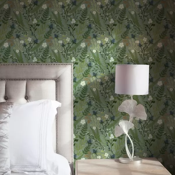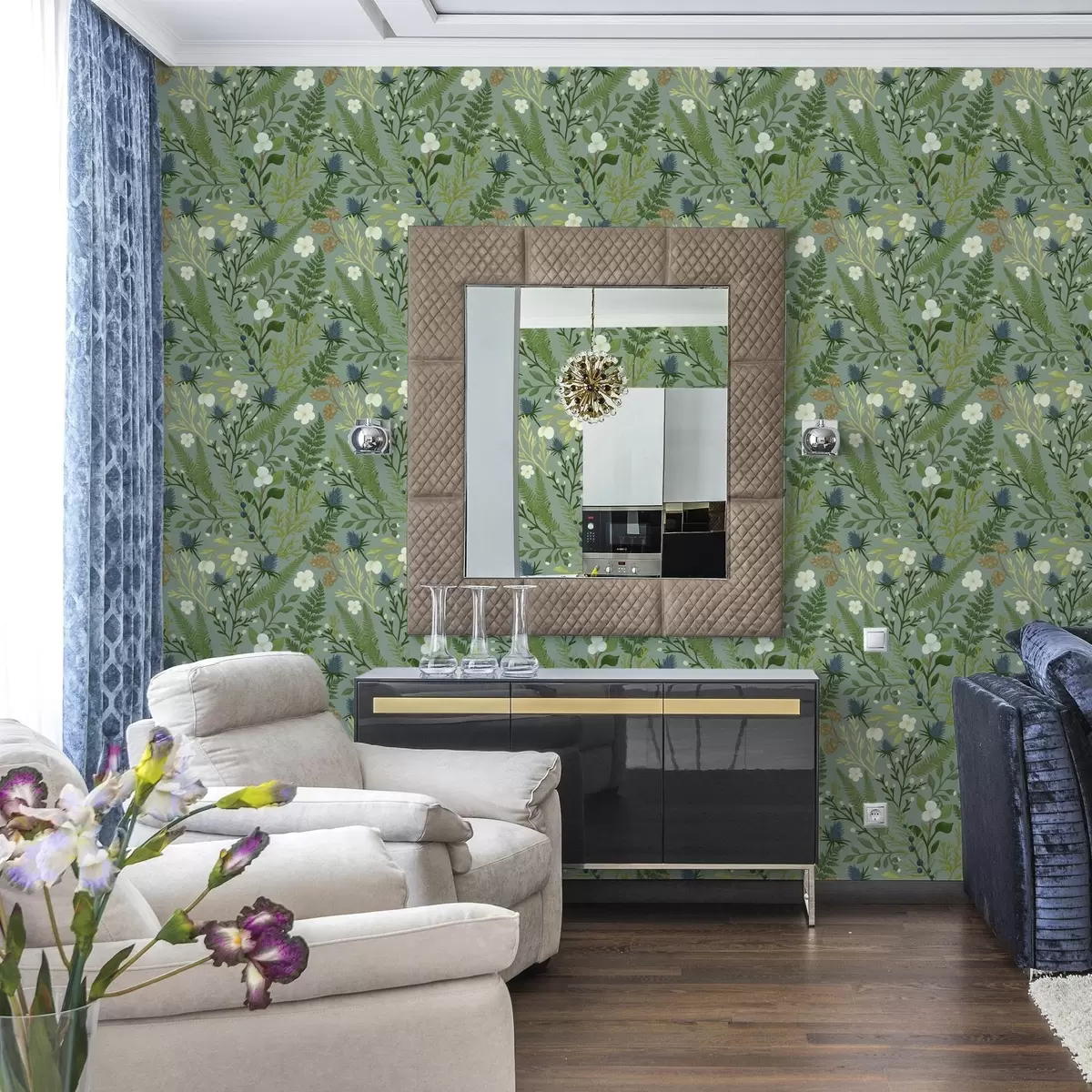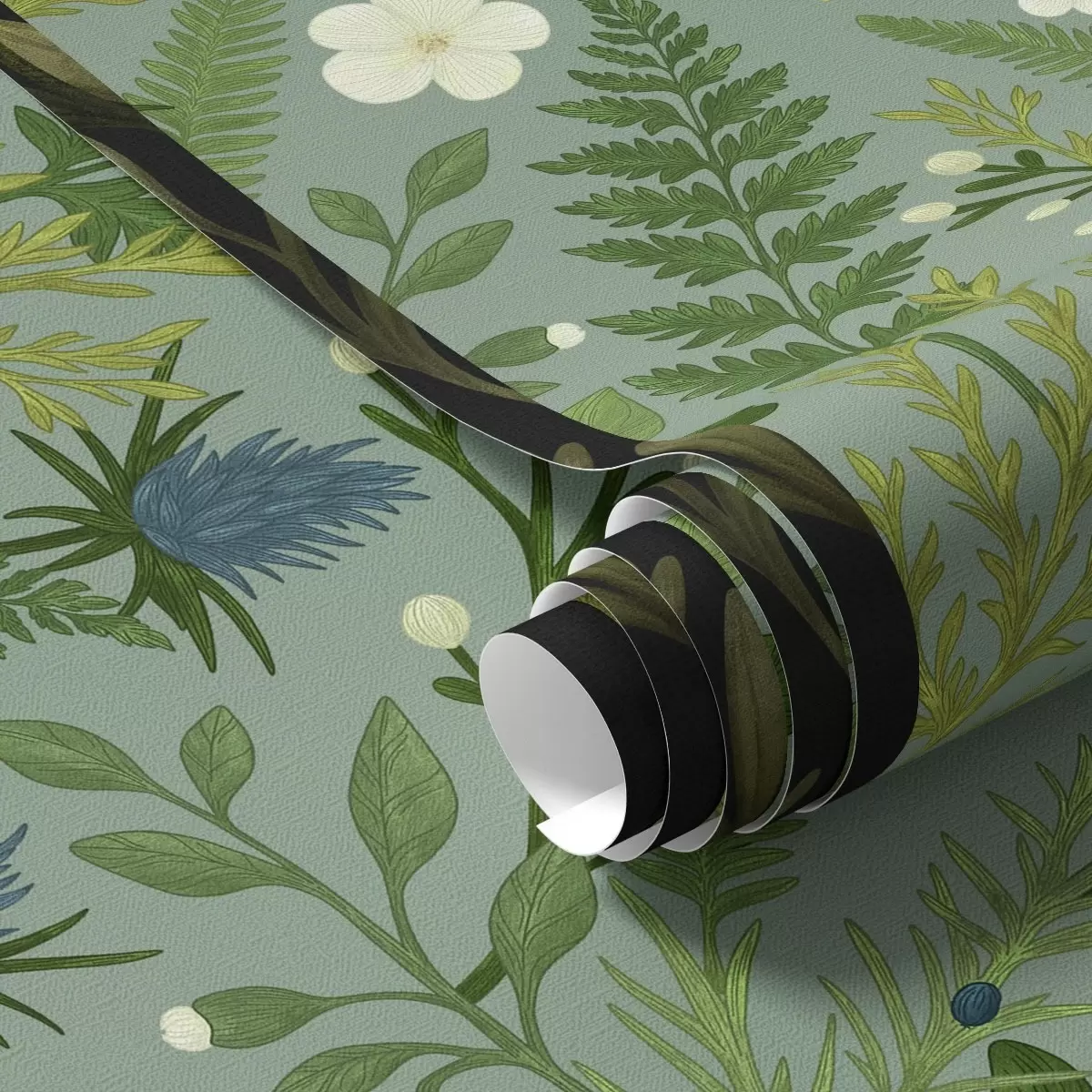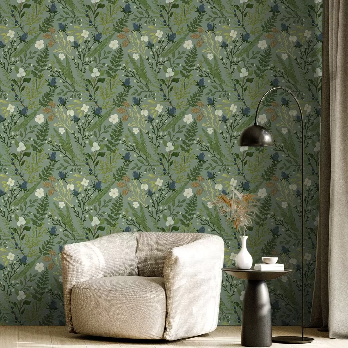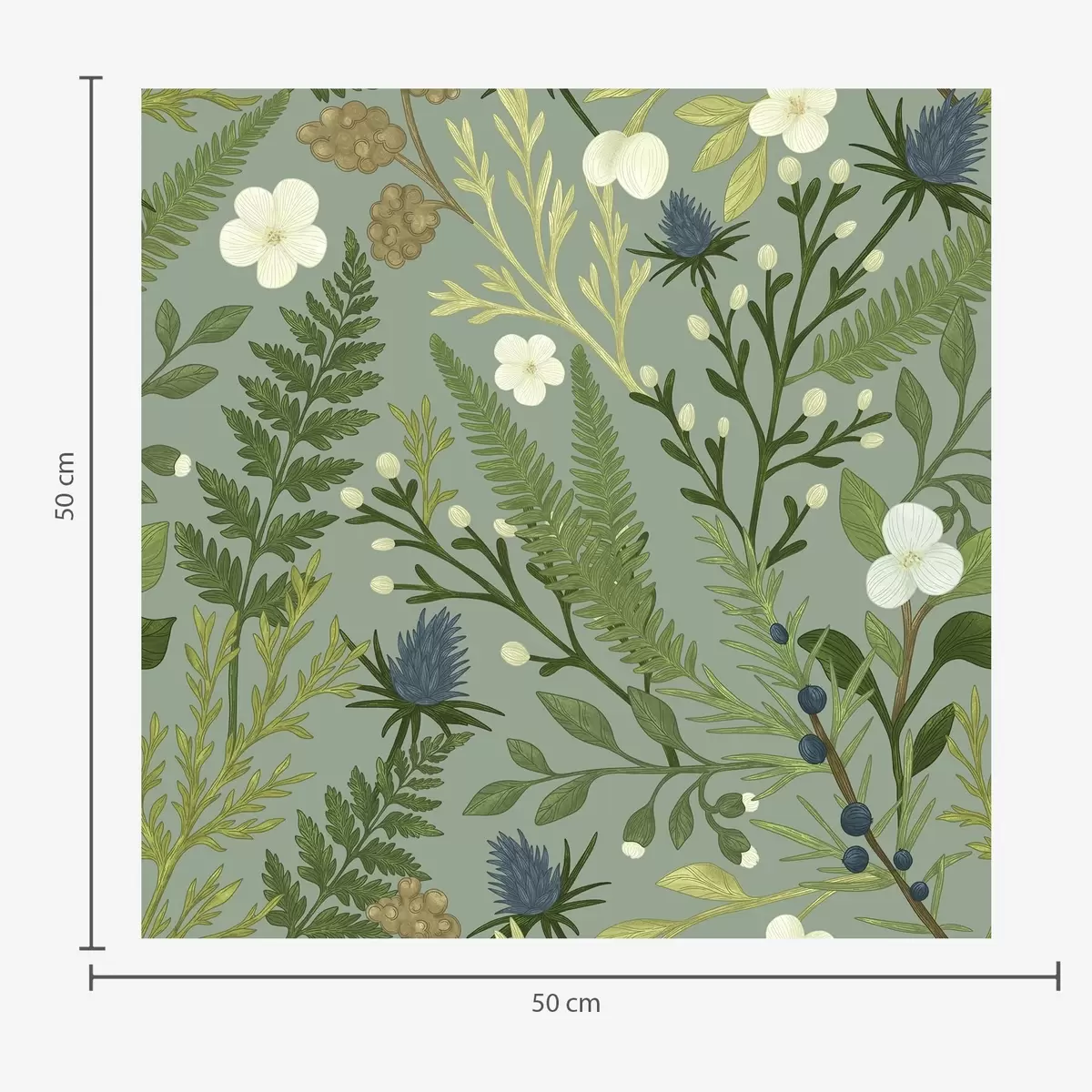 Papiers peints Herbes des bois, chicorée et baies sur fond de menthe Nr. a00621v1