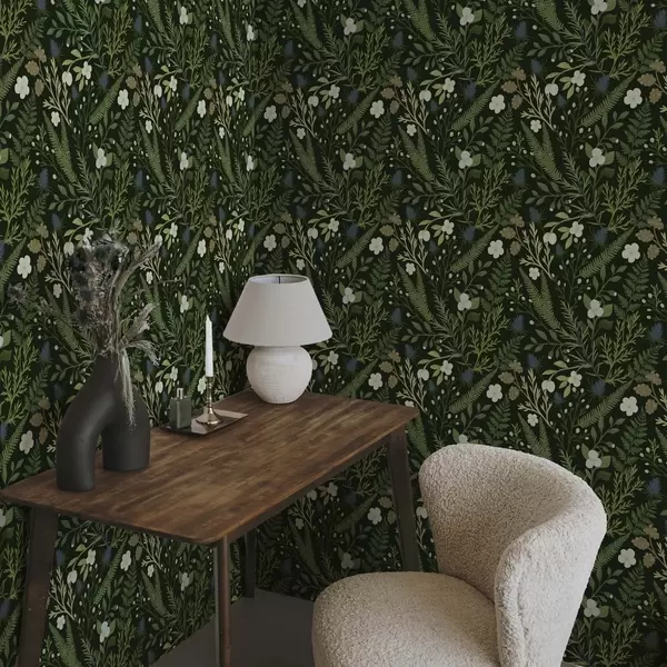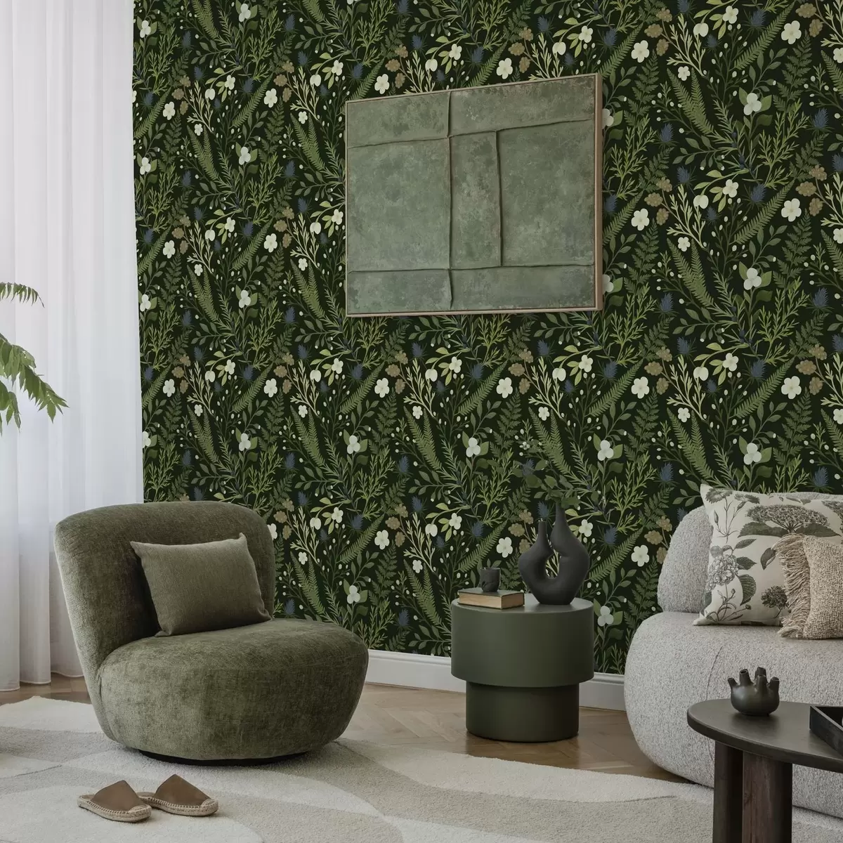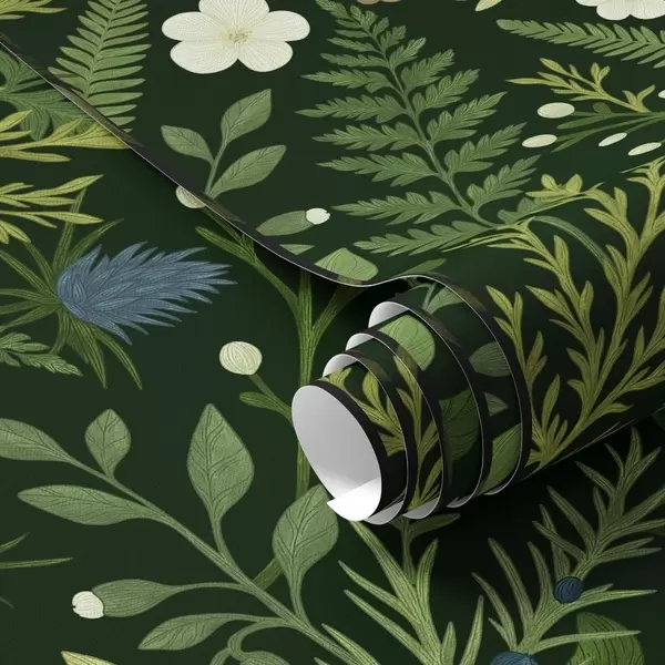 Papiers peints Herbes et baies des bois sur fond vert foncé Nr. a00621v2
