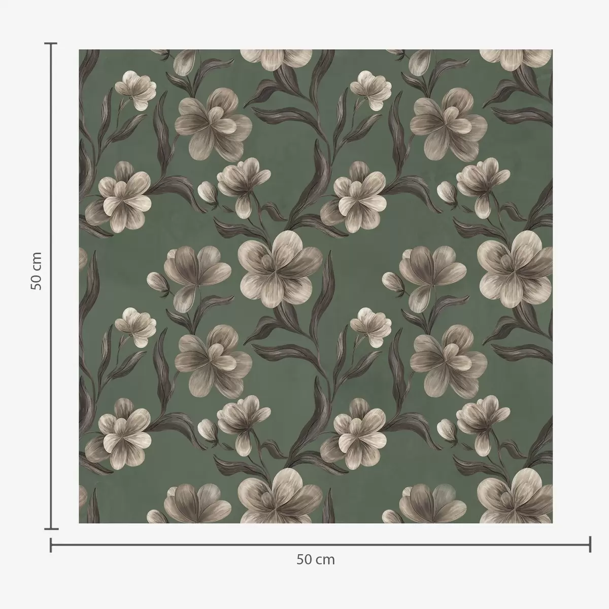Papiers peints Fleurs beiges sur fond vert intense Nr. a00626v3