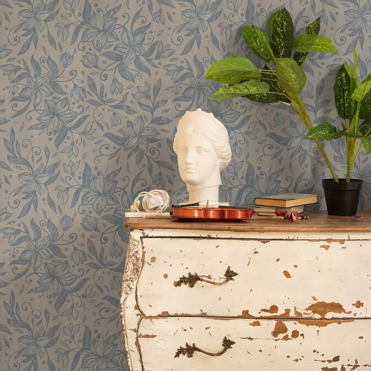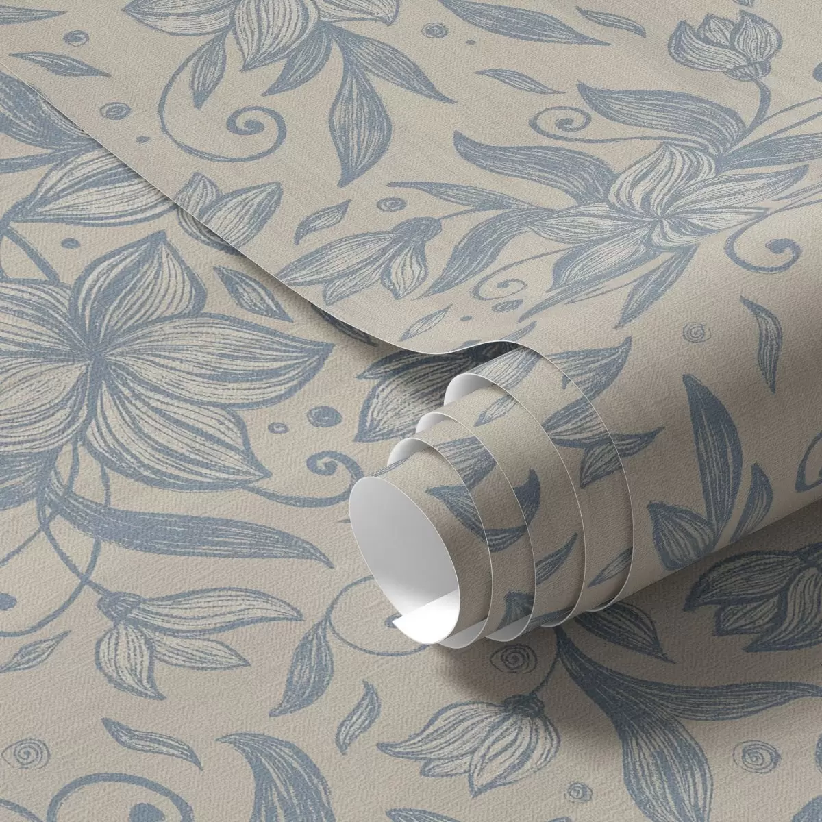Papiers peints Motif floral linéaire bleu sur fond beige chaud Nr. a00630v2