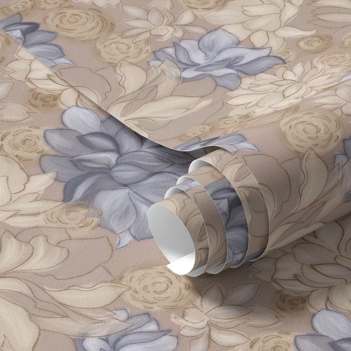 Papiers peints Crème et fleurs bleues sur fond beige chaud Nr. a00634v1
