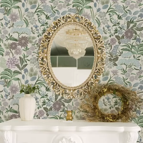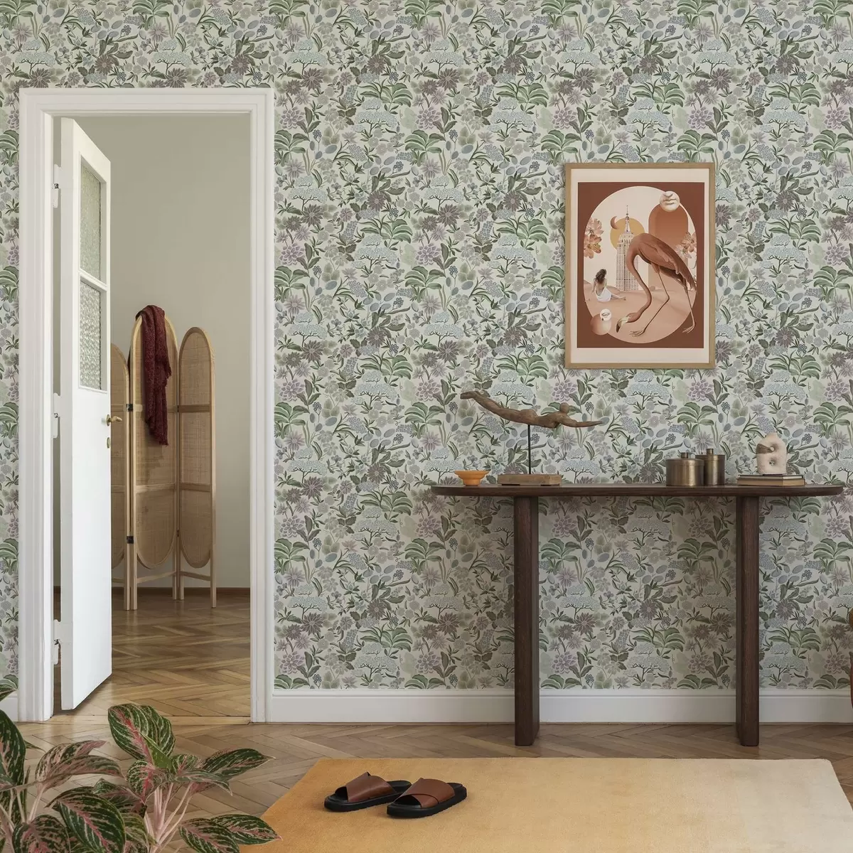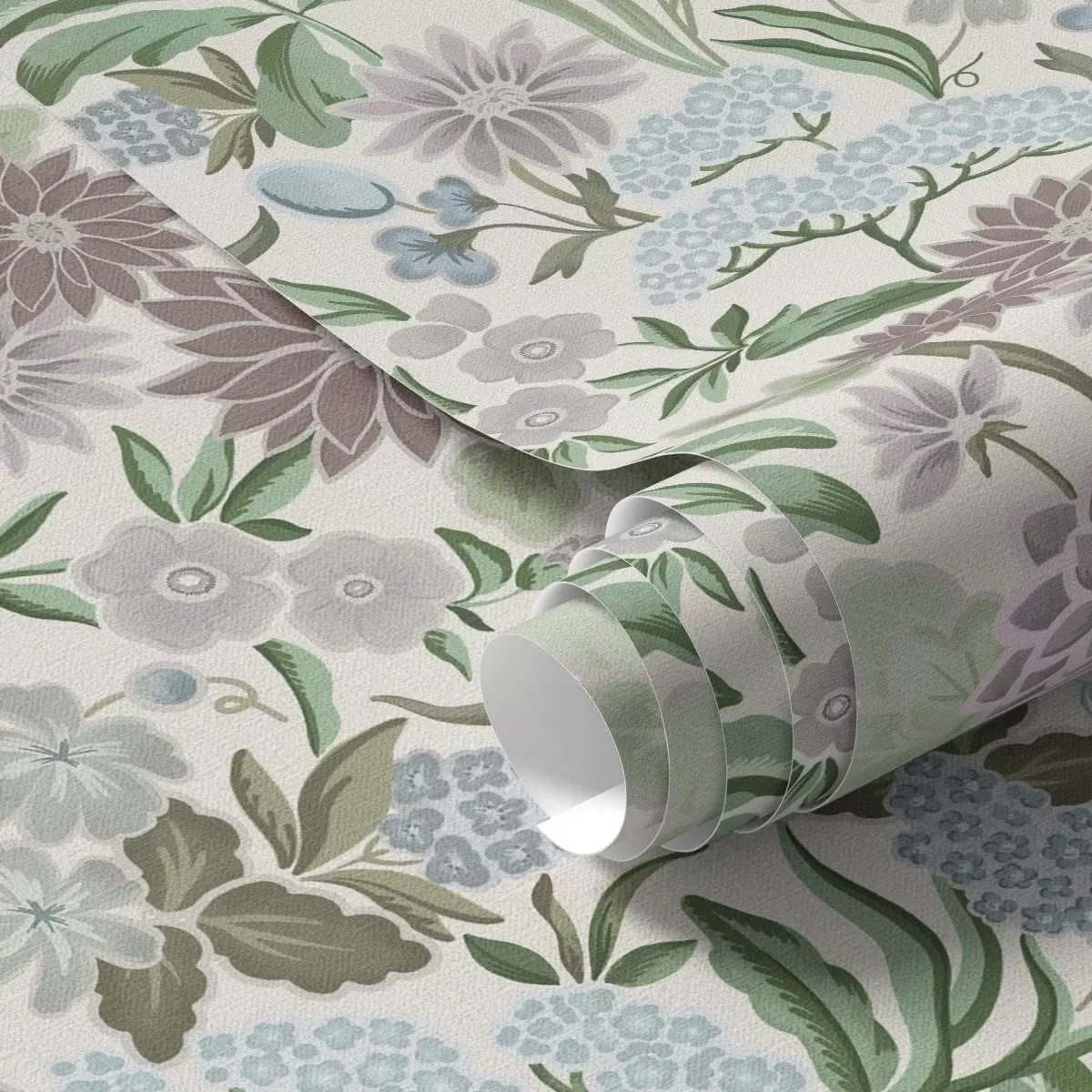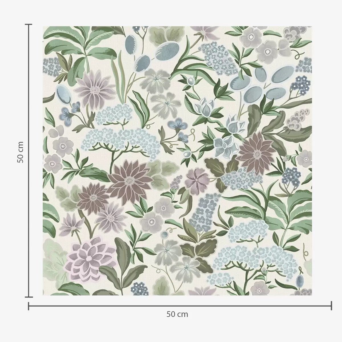 Papiers peints Fleurs et feuillages pastel dans une palette bleu menthe Nr. a00642