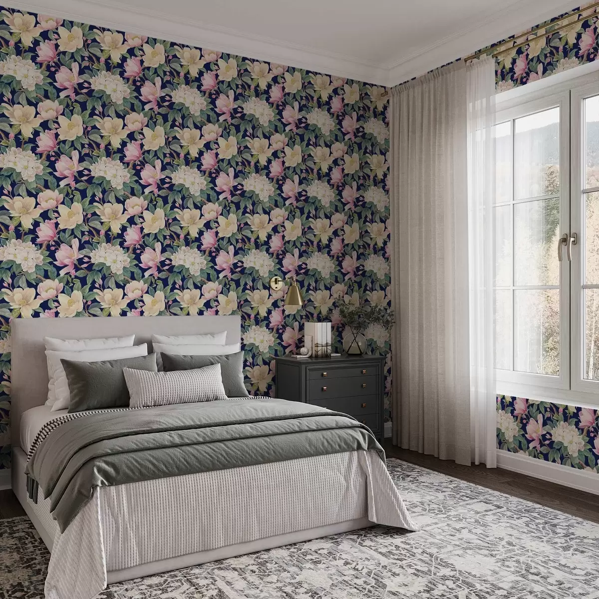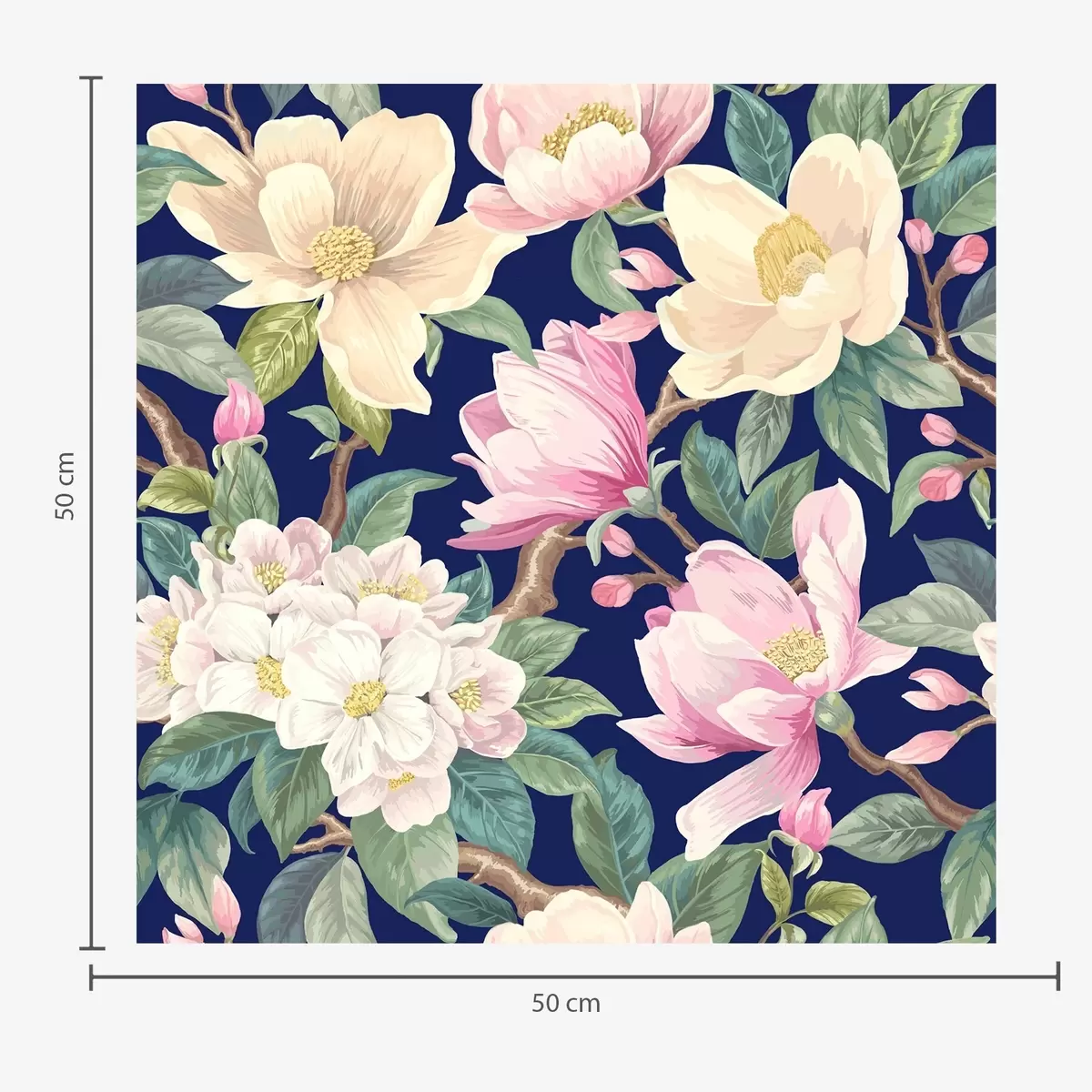 Papiers peints Magnolias et bourgeons sur fond bleu marine foncé Nr. a00644v1