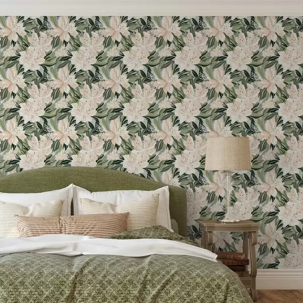 Papiers peints Grandes fleurs crème sur fond vert clair Nr. a00646