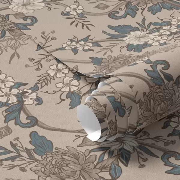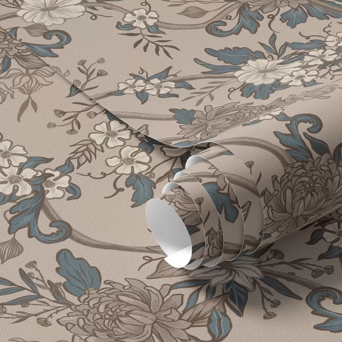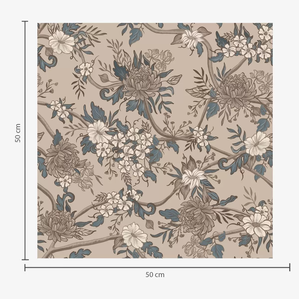 Papiers peints Grandes fleurs avec des feuilles à motifs sur un fond beige chaud Nr. a00649