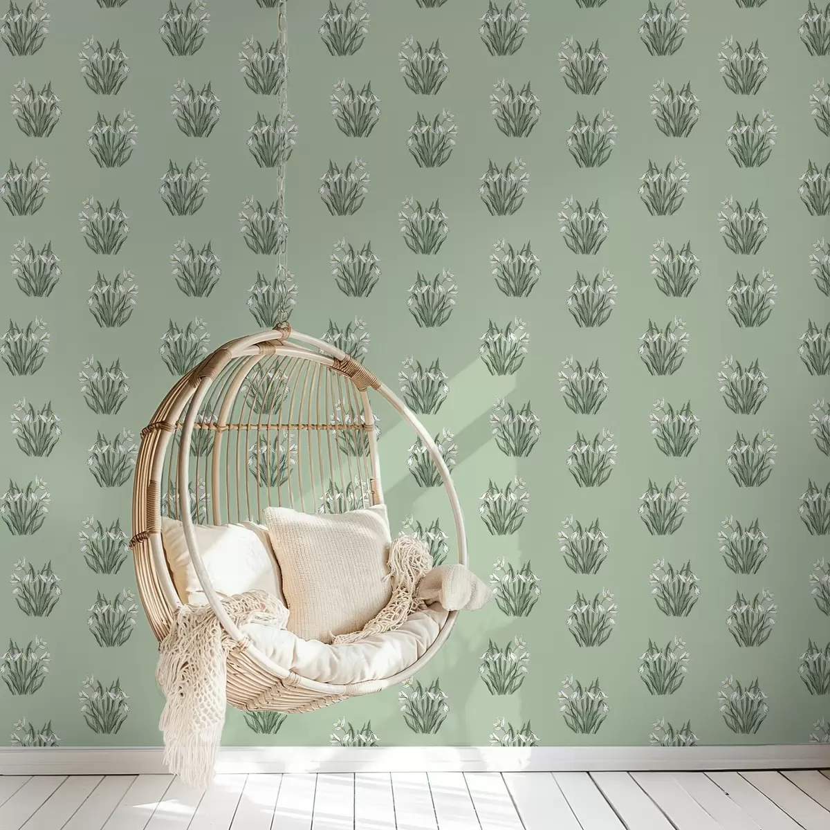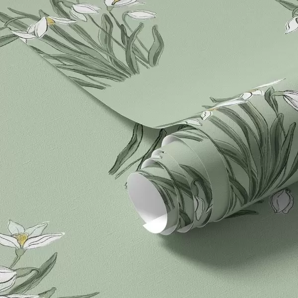 Papiers peints Perce-neige aux feuilles vertes sur fond vert tendre Nr. a00651v4