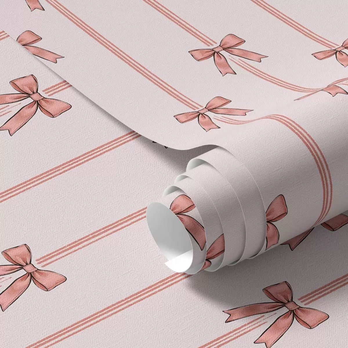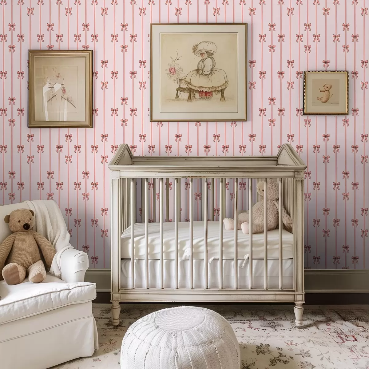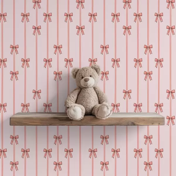 Papiers peints Rubans verticaux avec nœuds, fond rose poudré Nr. a00653v2