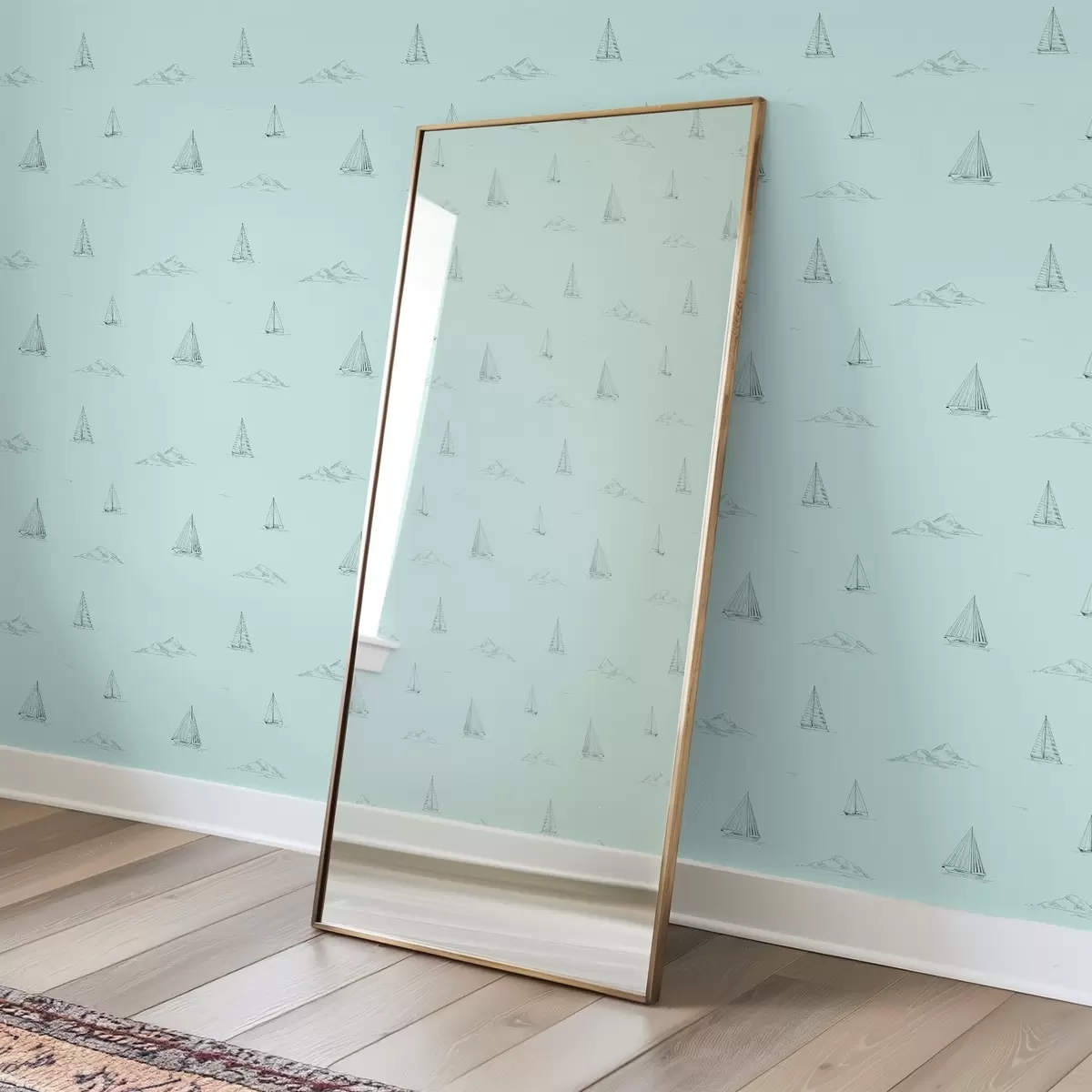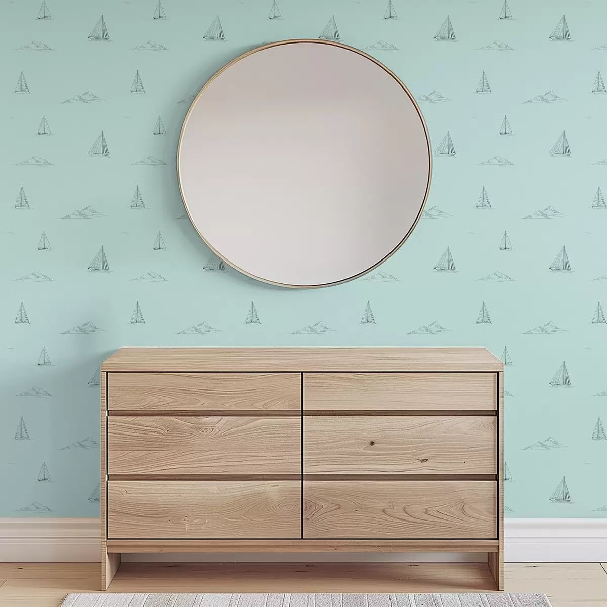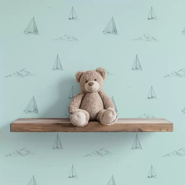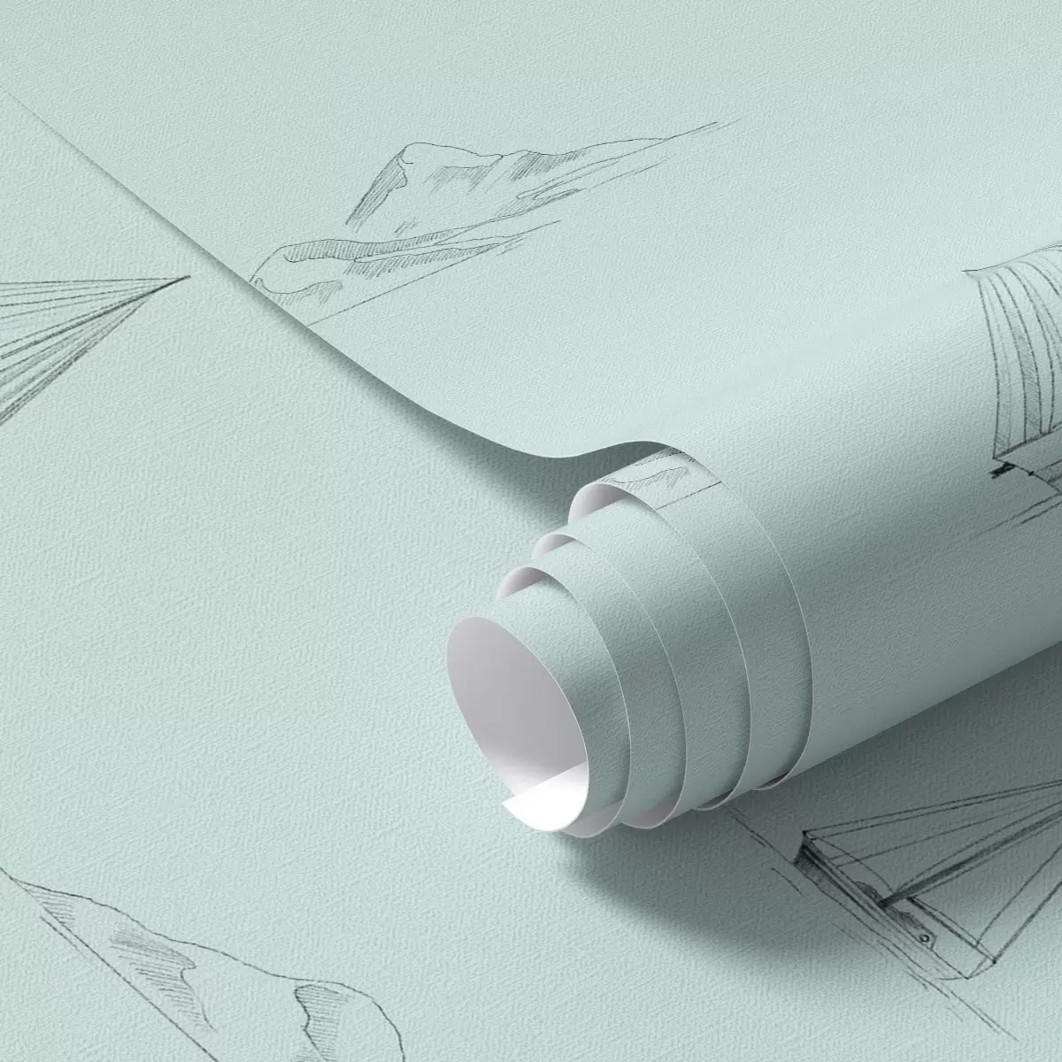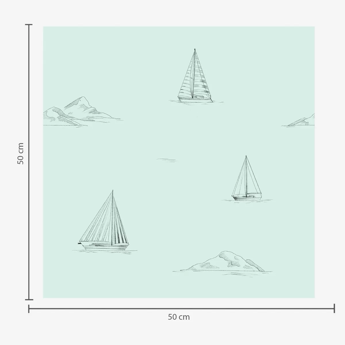 Papiers peints Esquisse de yachts et d'îles, fond vert menthe Nr. a00654v4