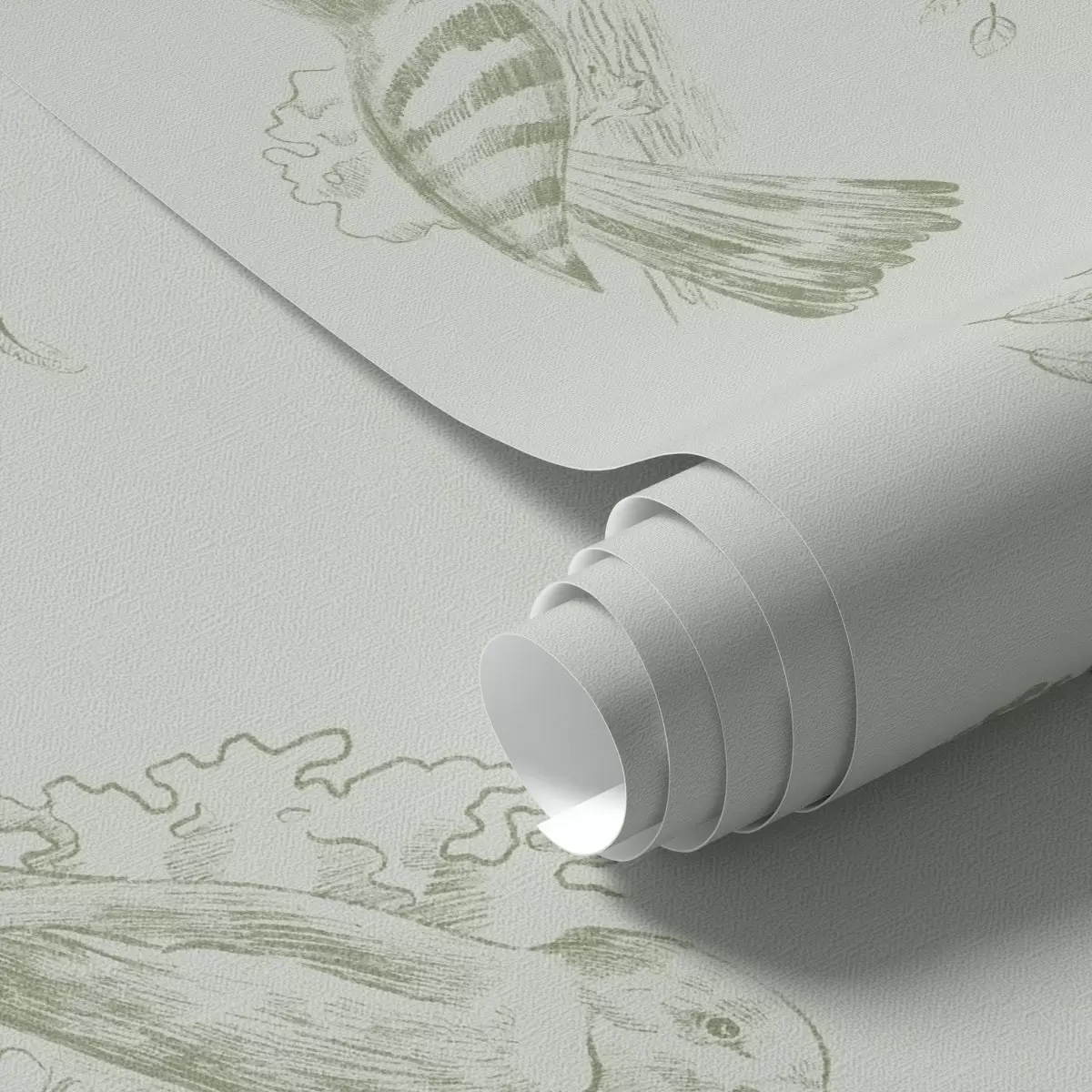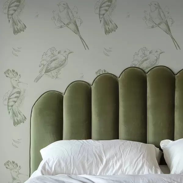 Papiers peints Toile d'oiseaux : croquis d'oiseaux sur fond gris-vert Nr. a00656v1