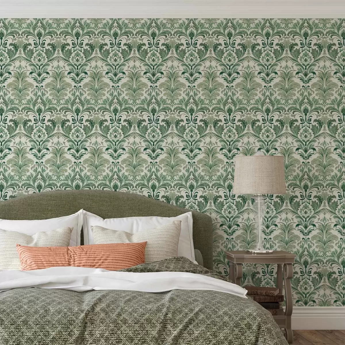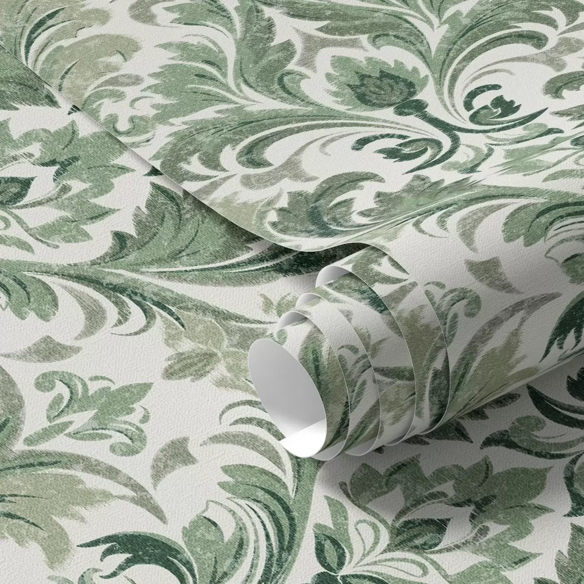 Papiers peints Damassé vert avec texture en relief sur fond clair Nr. a00692