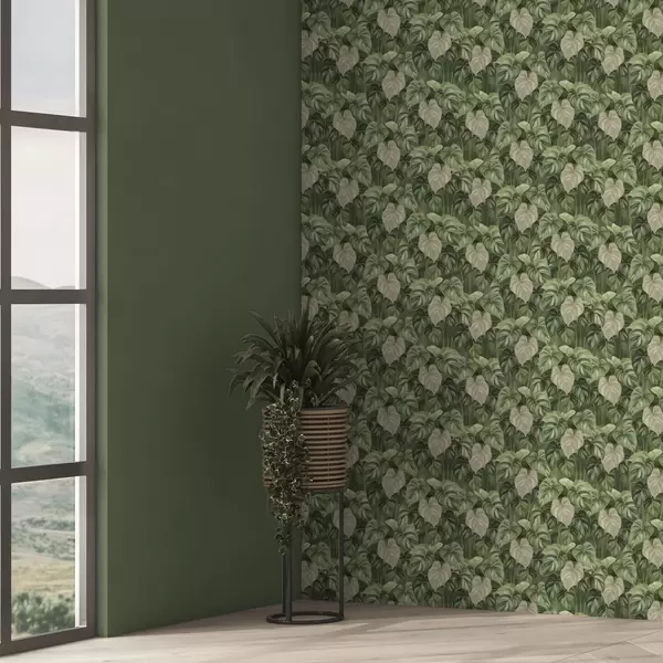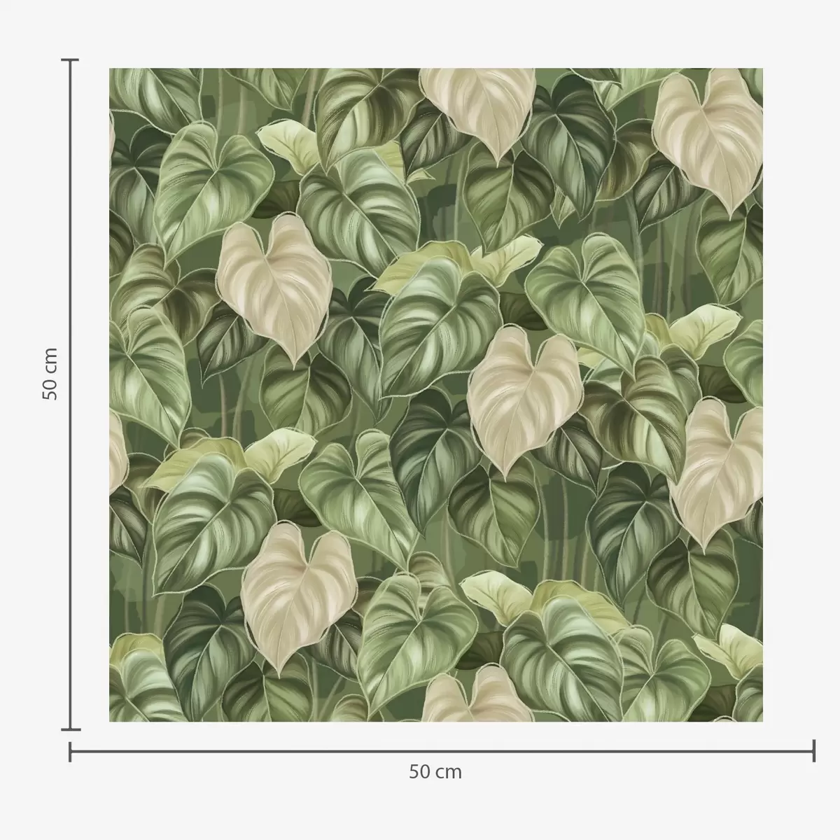 Papiers peints Feuilles luxuriantes de philodendron dans des tons de vert et d'ivoire Nr. a00695