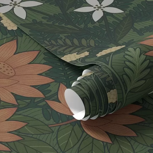 Papiers peints Grandes fleurs parmi le feuillage vert, composition décorative Nr. a00708