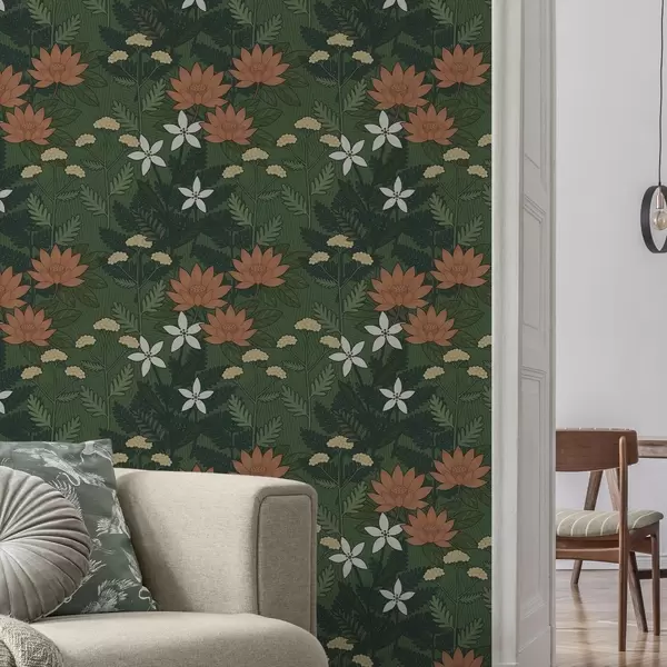 Papiers peints Grandes fleurs parmi le feuillage vert, composition décorative Nr. a00708