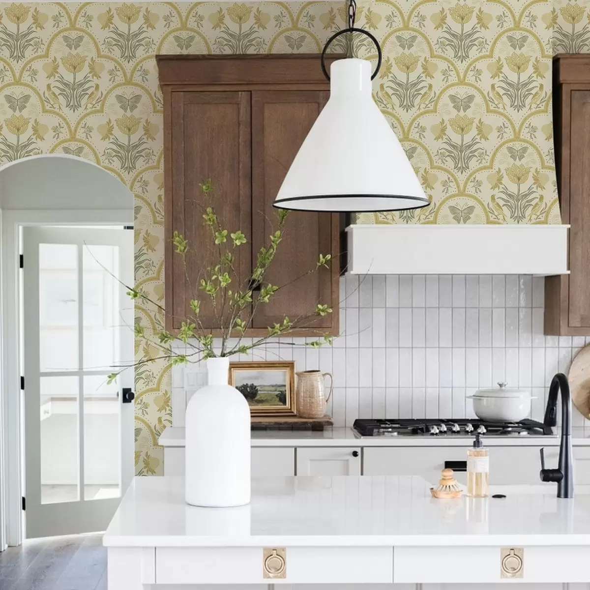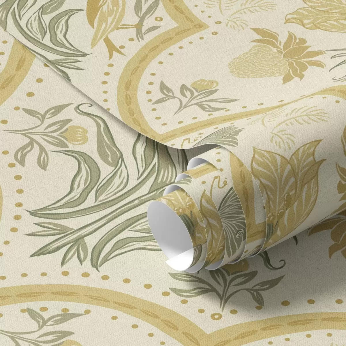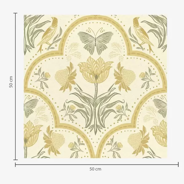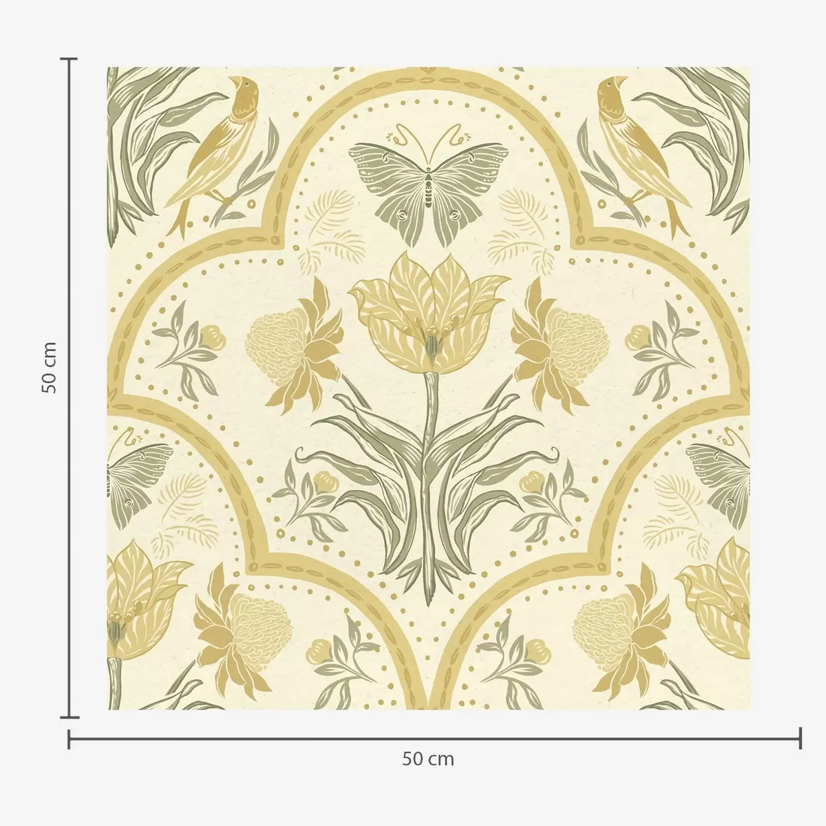 Papiers peints Ornement avec une tulipe, des oiseaux et des papillons, ocre Nr. a00722