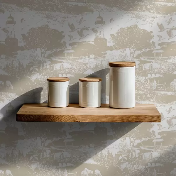 Papiers peints Scène avec phare, arbres et maisons en terre de Sienne Nr. a00739