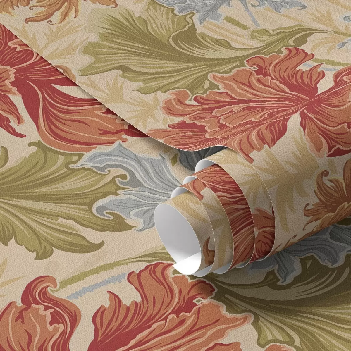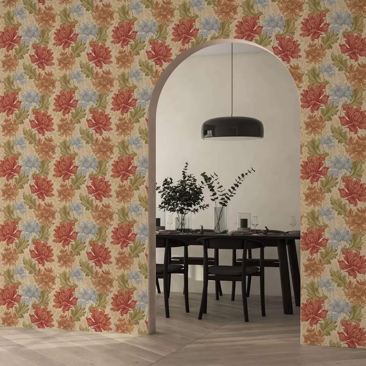 Papiers peints Grands chrysanthèmes aux teintes chaudes sur fond beige Nr. a00743