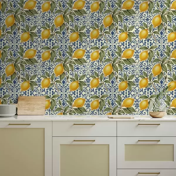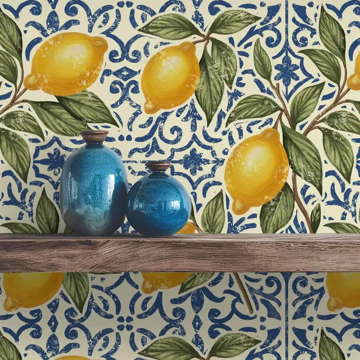 Papiers peints Branches de citron sur fond bleu décoratif Nr. a00763