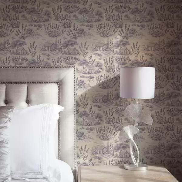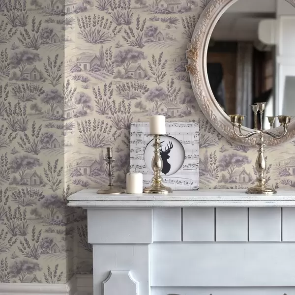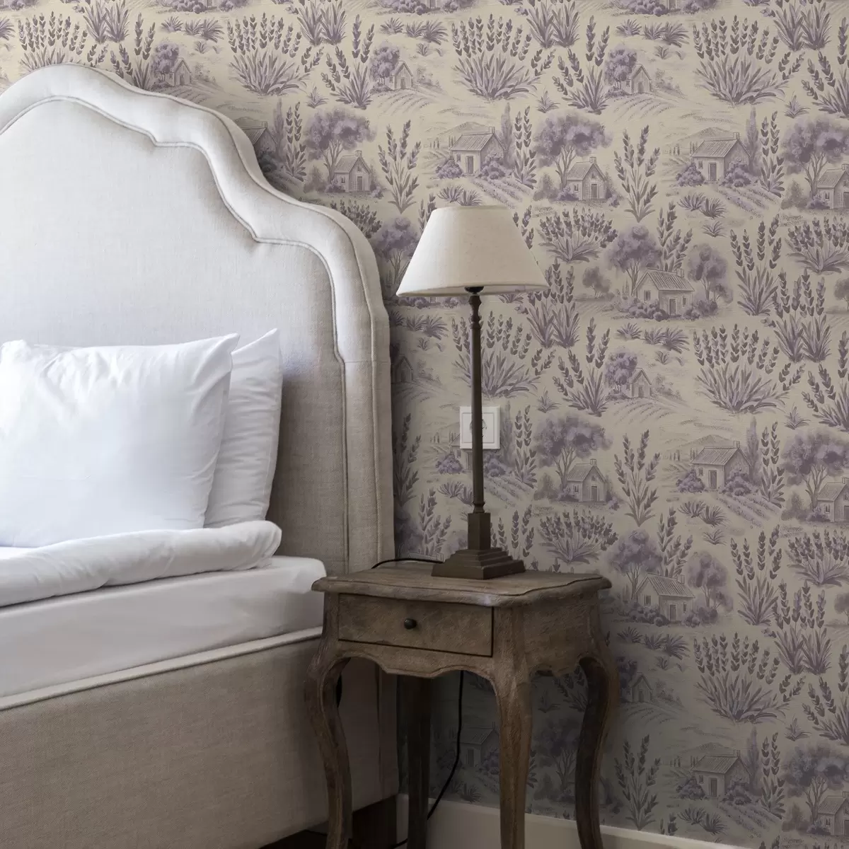 Papiers peints Champs de lavande et maisons aux tons pastel Nr. a00765