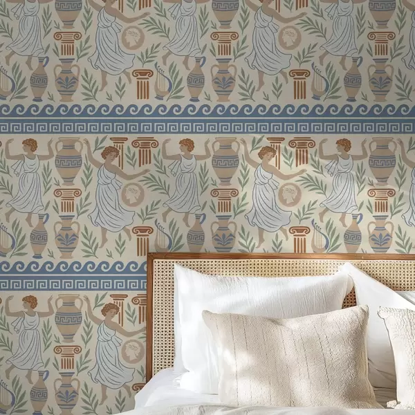 Papiers peints Ornement grec antique avec des personnages, des vases et des colonnes Nr. a00768