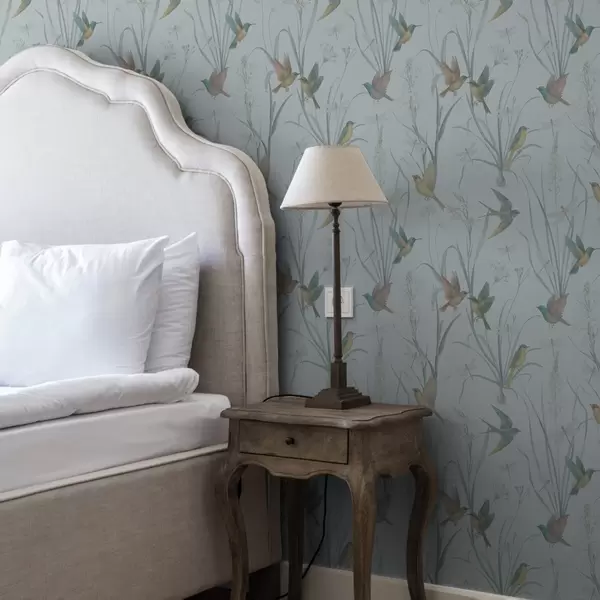 Papiers peints Oiseaux parmi les herbes des prairies sur un sol gris-bleu Nr. a00776