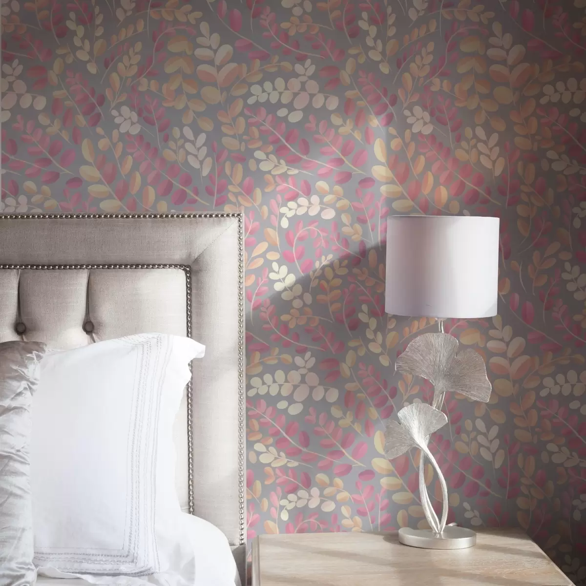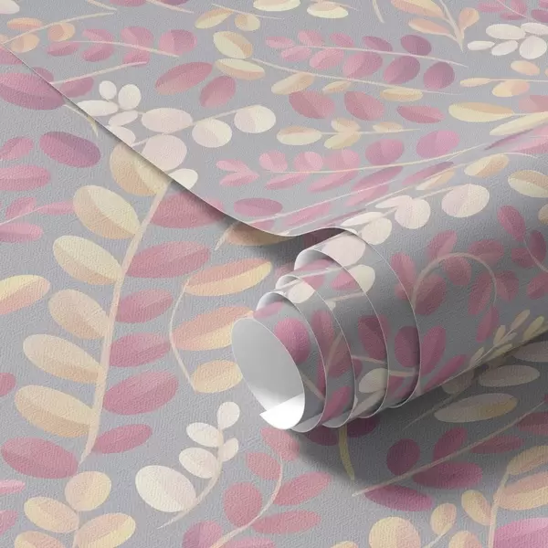 Papiers peints Branches pastel avec feuillage rose-pêche sur fond gris Nr. a00799v1
