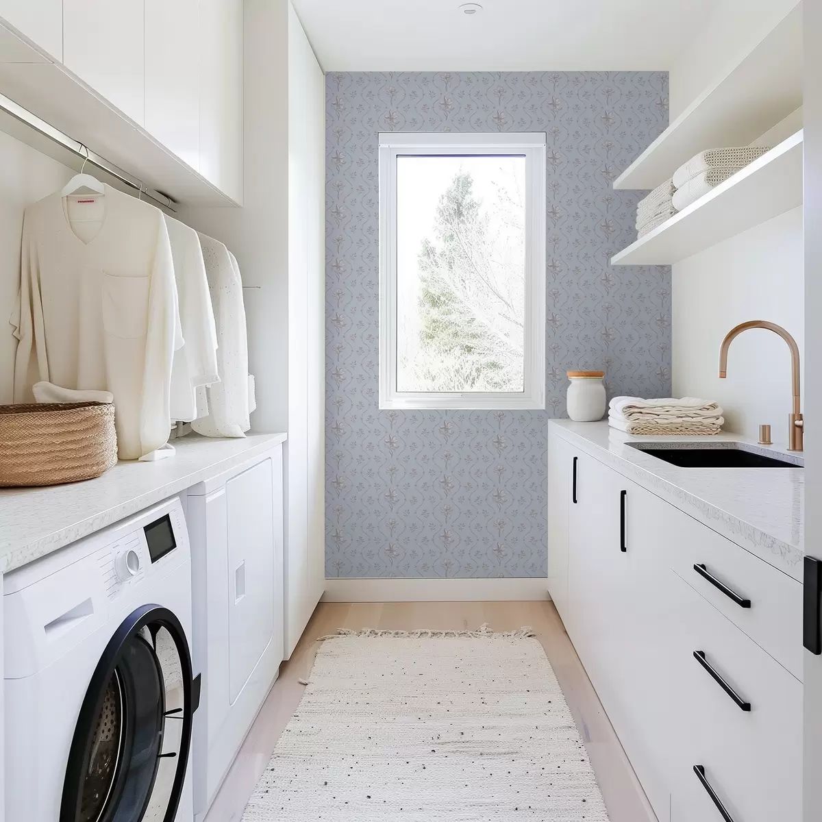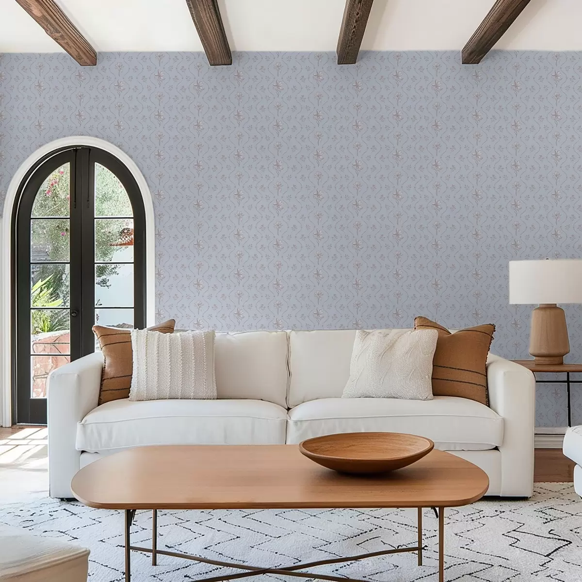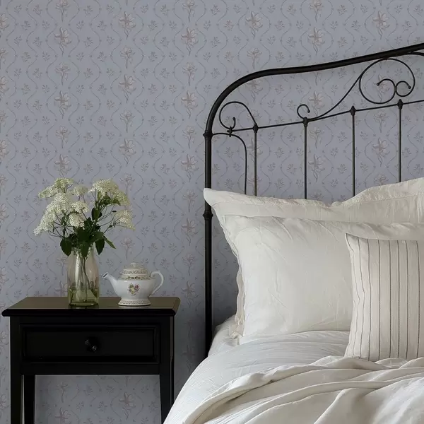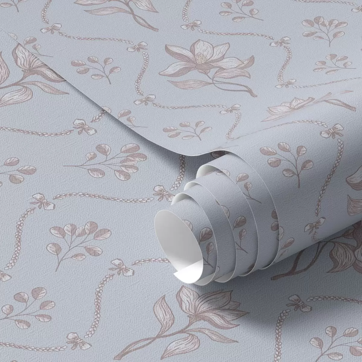 Papiers peints Petites fleurs et rubans dans des tons bleu pâle Nr. a00808v1